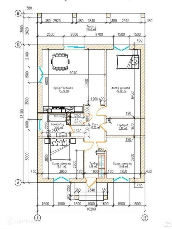Площадь кухни 34.2 м2