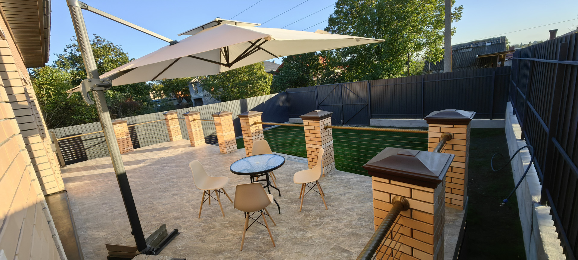 ✅На заднем дворе располагается терраса площадью 37 м2 с шикарной большой лестницей.
