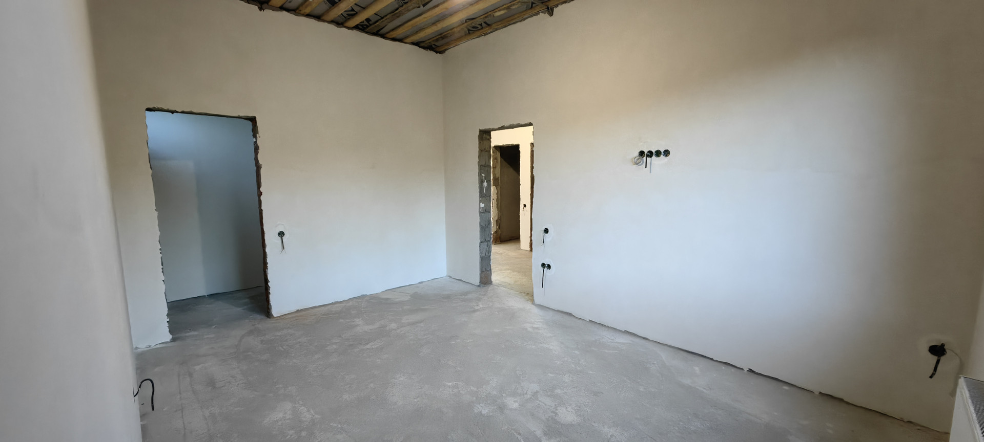 Стены- оштукатурены, отшпаклеванны под чистовую отделку.