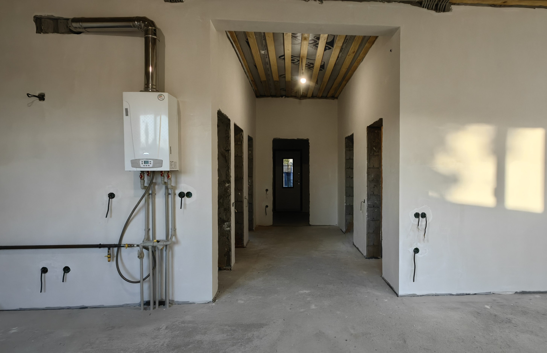Отопление - теплый пол в кухне-гостиной, ванной, туалете, коридоре, прихожей, кладовой, установлены отопительные панельные радиаторы, водяной насос с коллектором, двухконтурный котёл ВАХI есо 4s 24, отопительные трубы Чехия, канализация Оstеndоrf.(все подключено к функционированию).