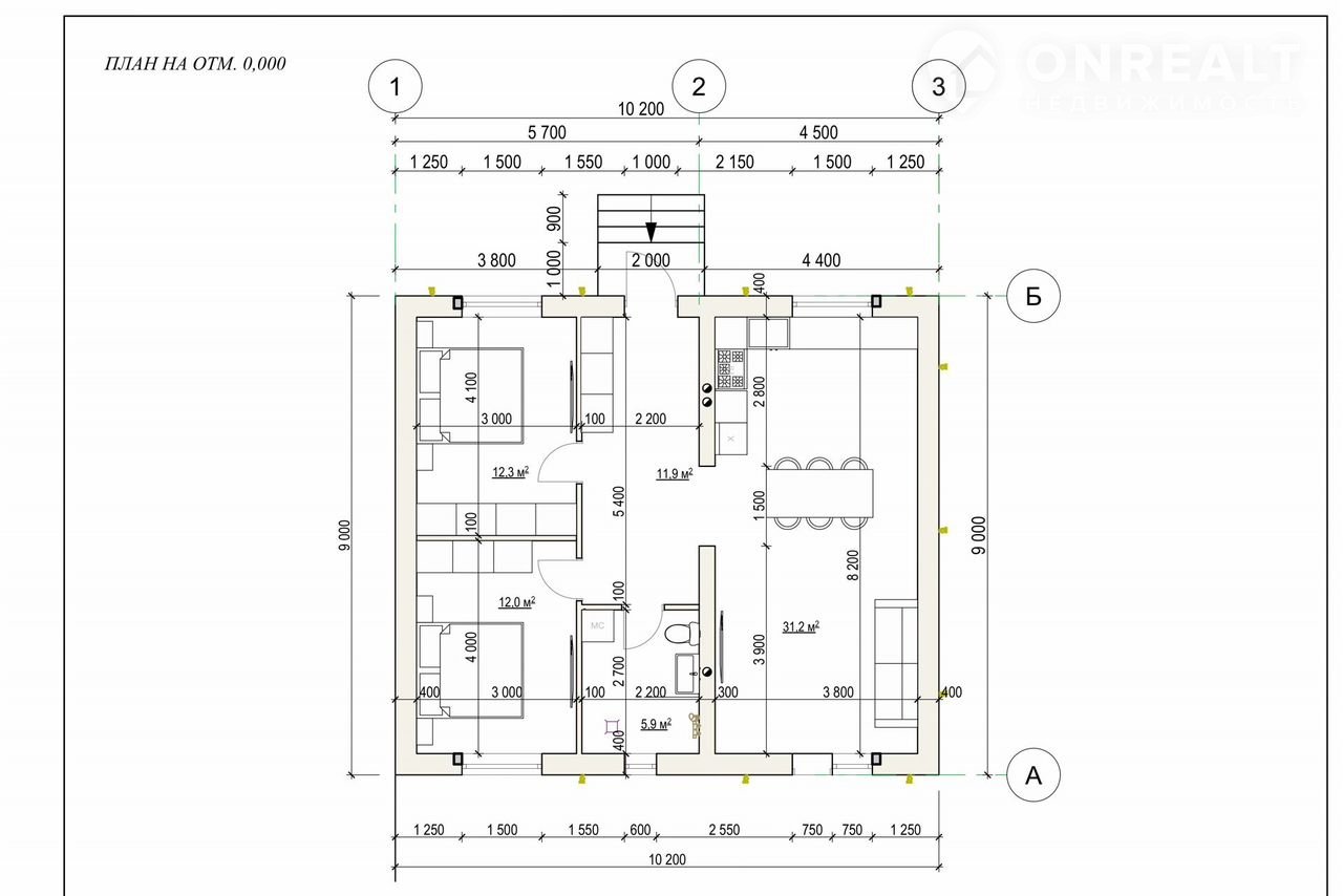 2 cпальни + простоpнaя кухня-гocтиная
