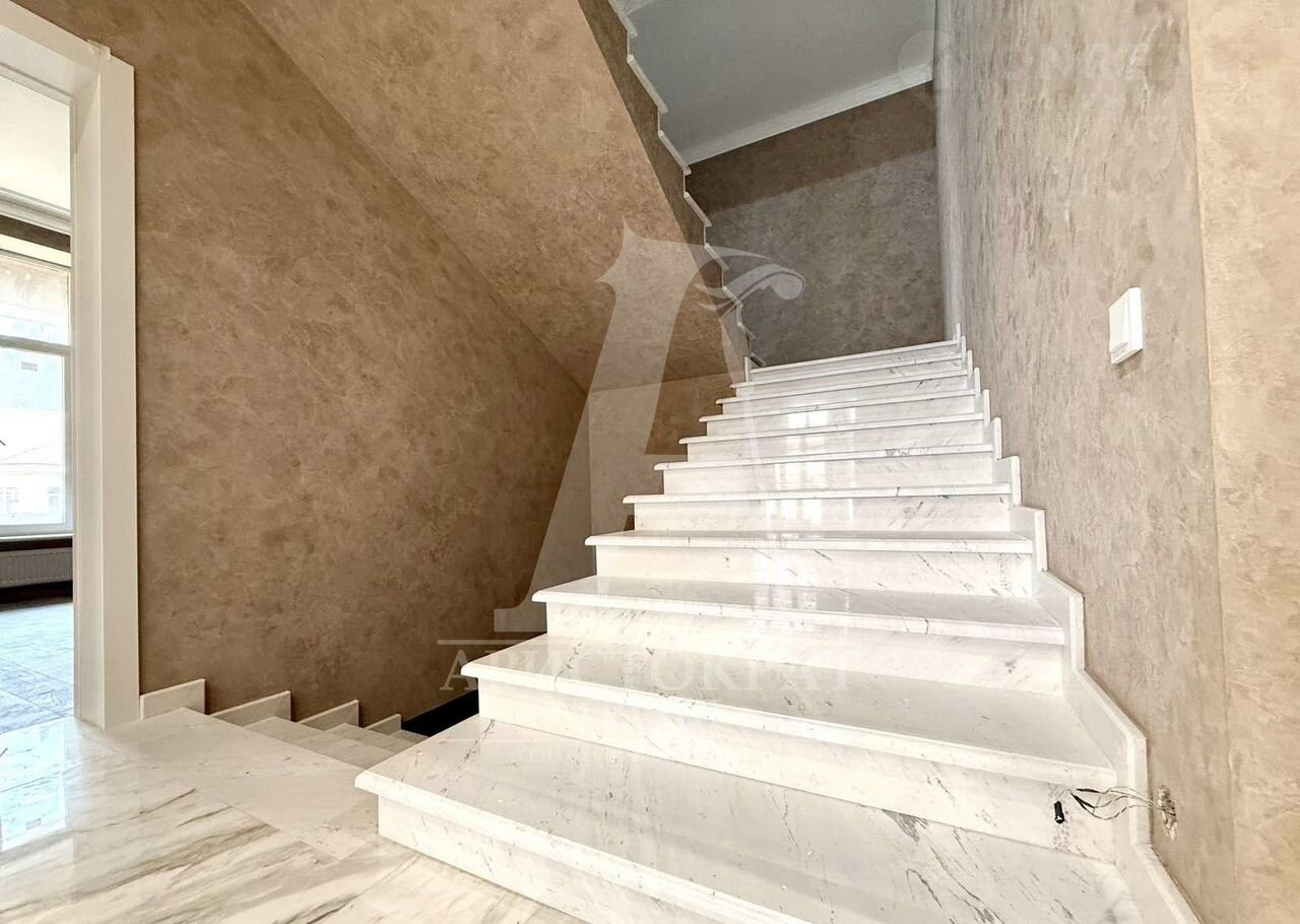 Первый этаж : большой и просторный холл , гостиная , кухня-столовая , гостевой санузел , гостевая комната, зимний каминный зал с витражными окнами и выходи на летнюю веранду, шикарная лестница с автоматической подсветкой выполнена из мрамора .