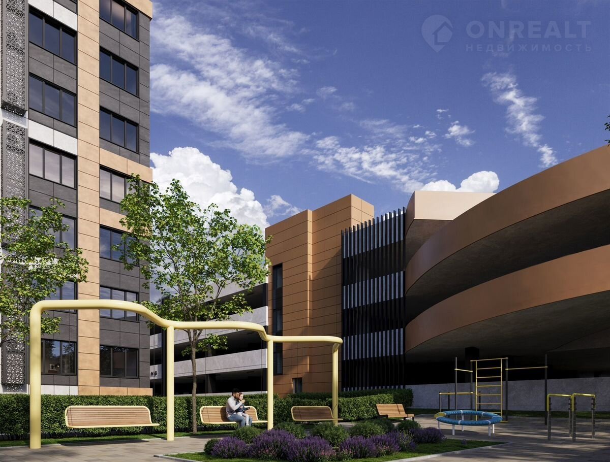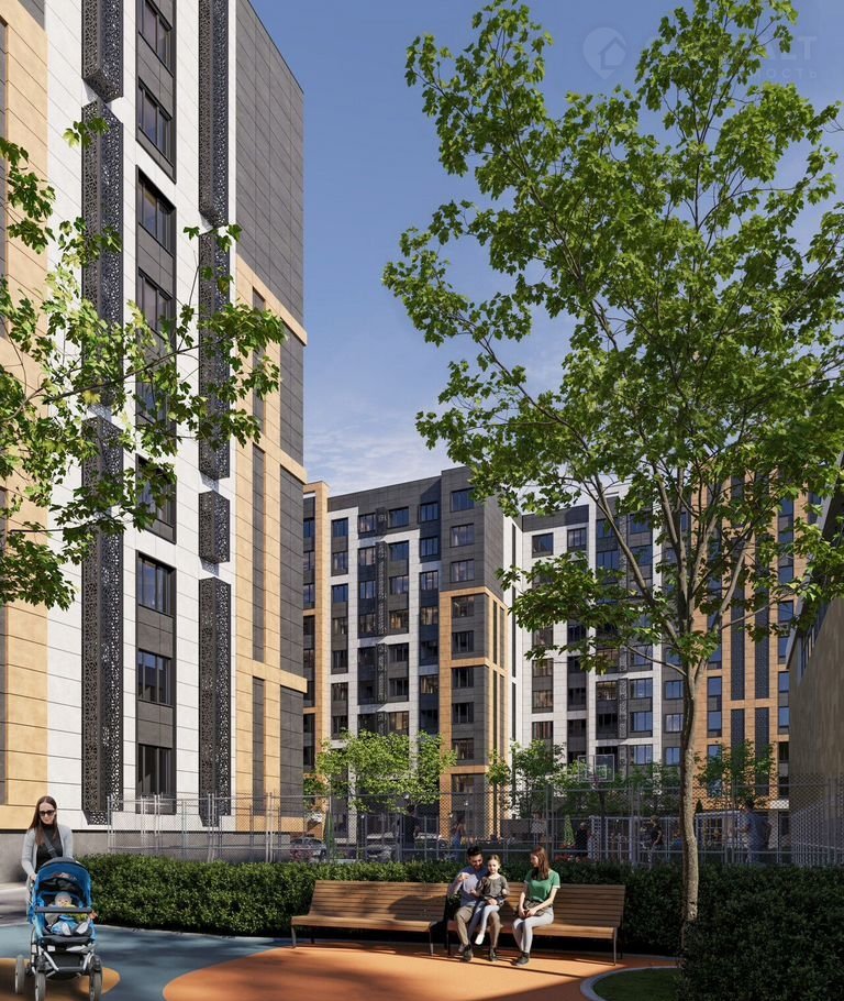 Комфортная среда для жизни: благоустроенная охраняемая территория комплекса с современными эко-площадками, зонами для отдыха, спортивными площадками.