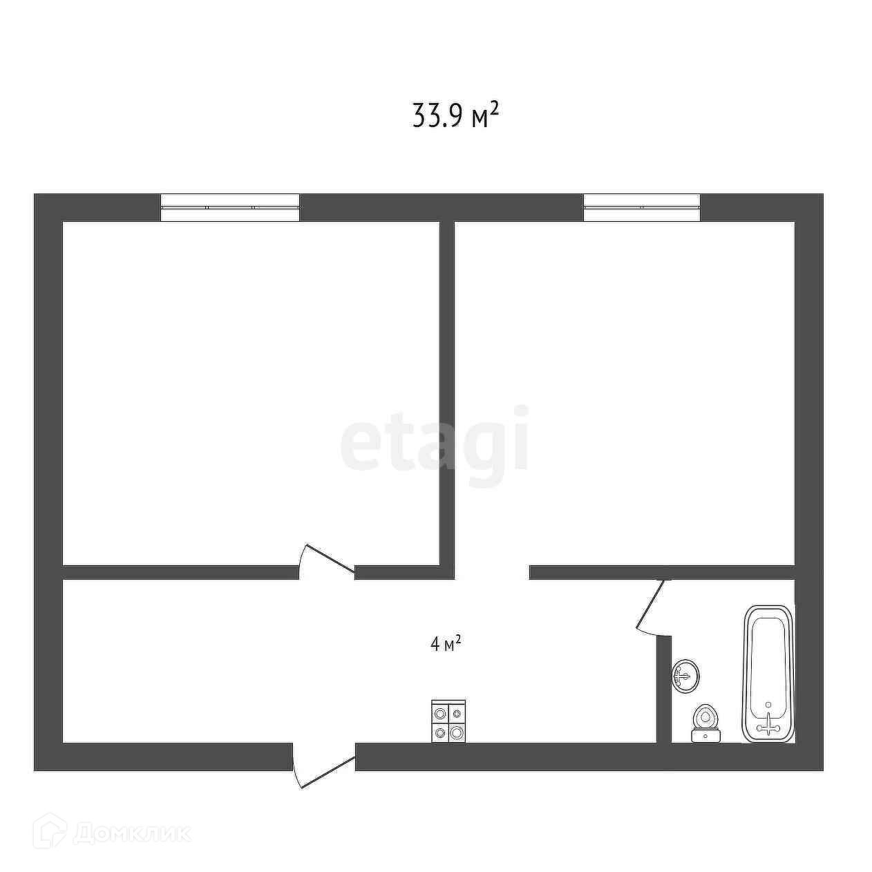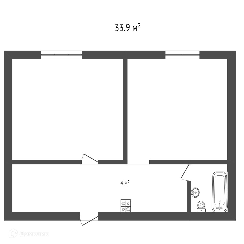 Общая площадь 33.9 м2
