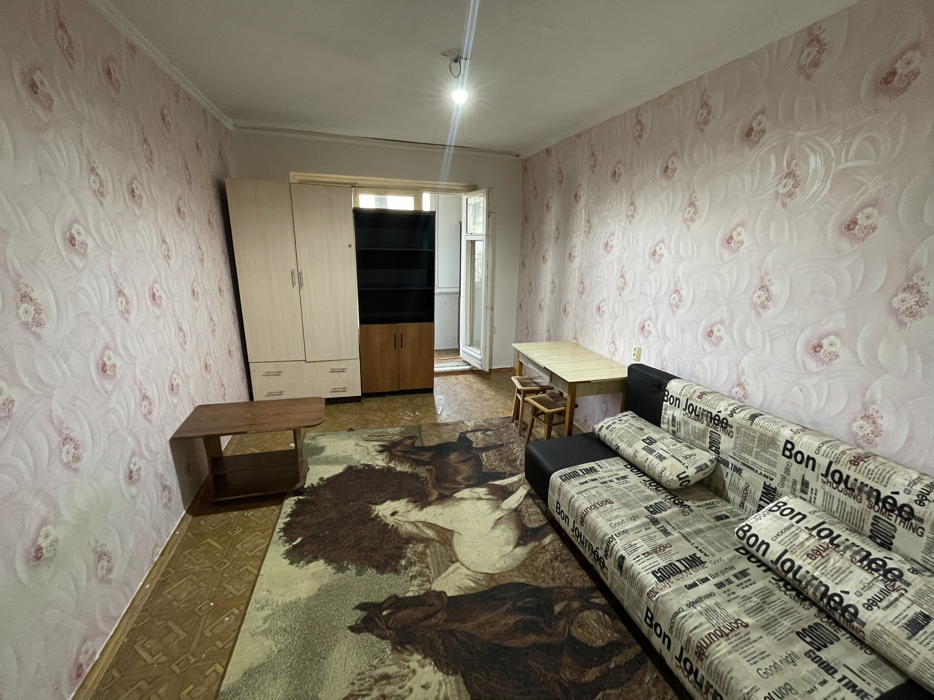 Комната большая, светлая; мебель вся остается. Санузел совмещенный