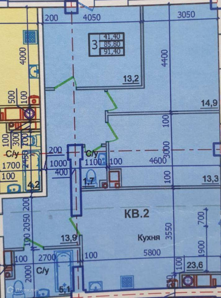 Общая площадь 91.4 м2