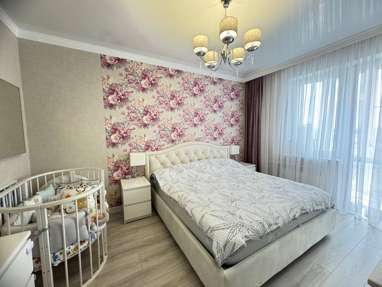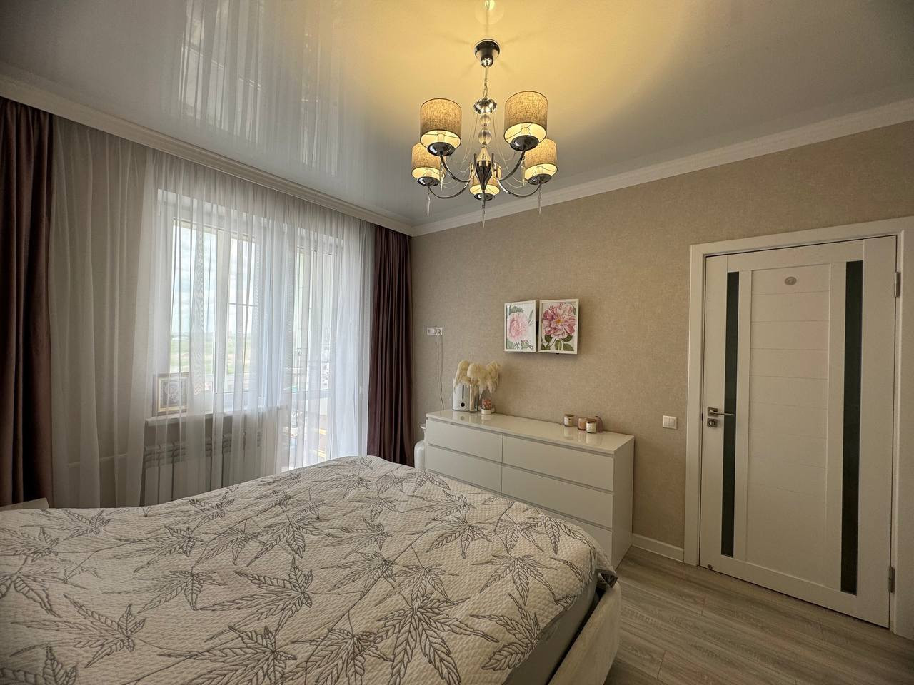 В спaльнe бaлкoн заcтeклен энергосберегающими окнами фирмы "Босфор".