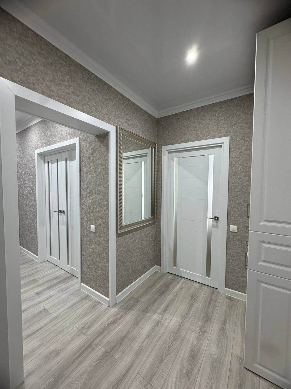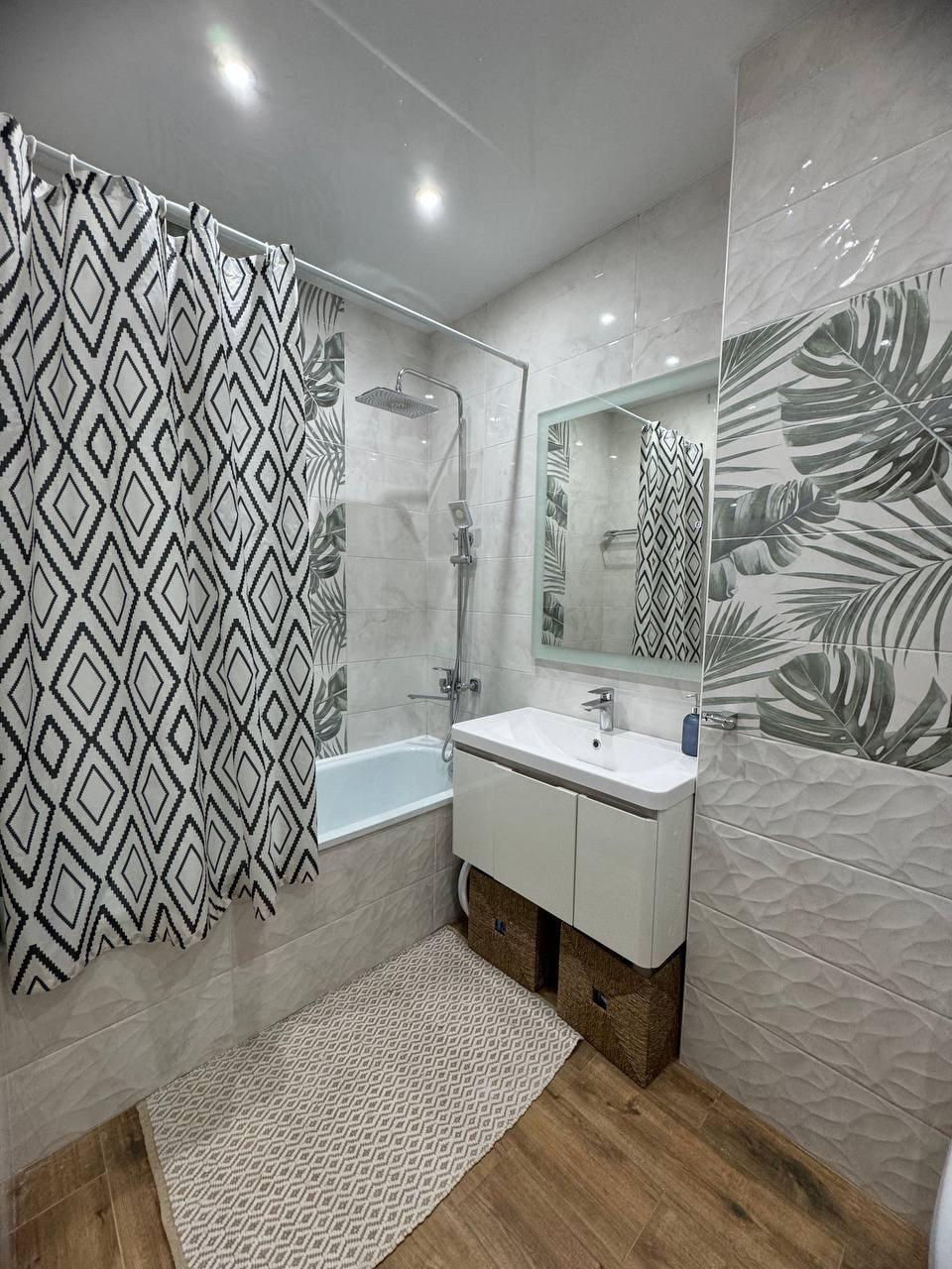 ⁃ люстры и точечное освещение.