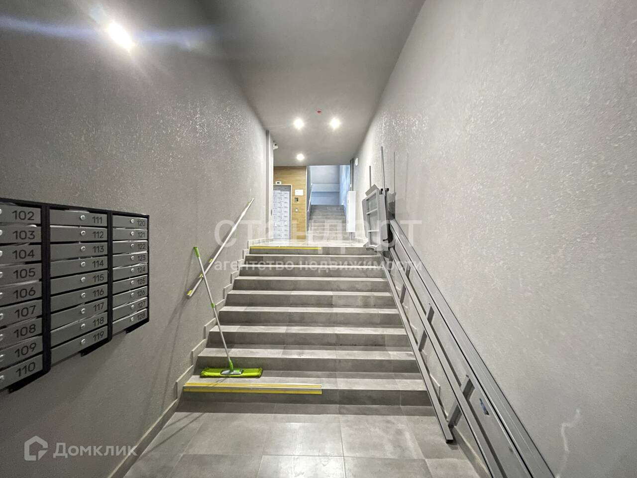 этаже. Широкий лестничный марш. Дом