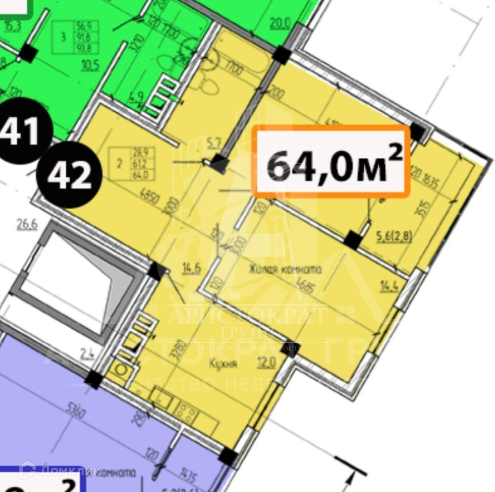 Общая площадь 64 м2