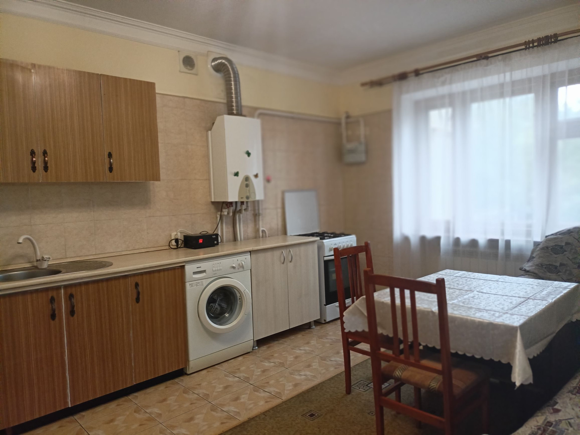 2-х комнатная квартира  светлая в кирпичном доме с индивидуальным отоплением, оплата за коммуналку небольшая, всё по счетчикам, ТСЖ нет. Проведён интернет(POST), есть стиральная машина, холодильник, телевизор, мебель, домофон. Кухня большая -20м2, ванная - 4 м2(ванна угловая),комната - 15м2, спальня -10м2, прихожая -8м2, ремонт есть. Район с развитой инфраструктурой: рядом 30-я школа, магазины, рынок, фитнес-центр.