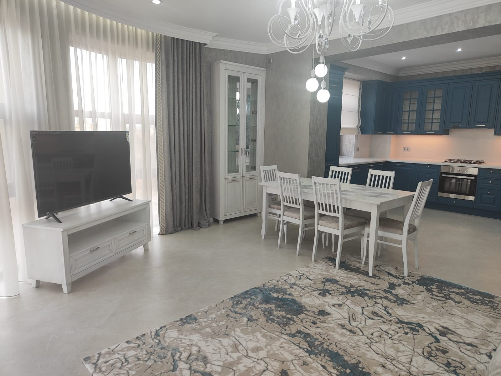Квартира расположена на пятом этаже десятиэтажного дома, построенного в 2022 году. Жилая площадь составляет 55 квадратных метров, а кухня занимает 20 квадратных метров, предоставляя достаточно места для комфортного приготовления пищи и семейных ужинов.