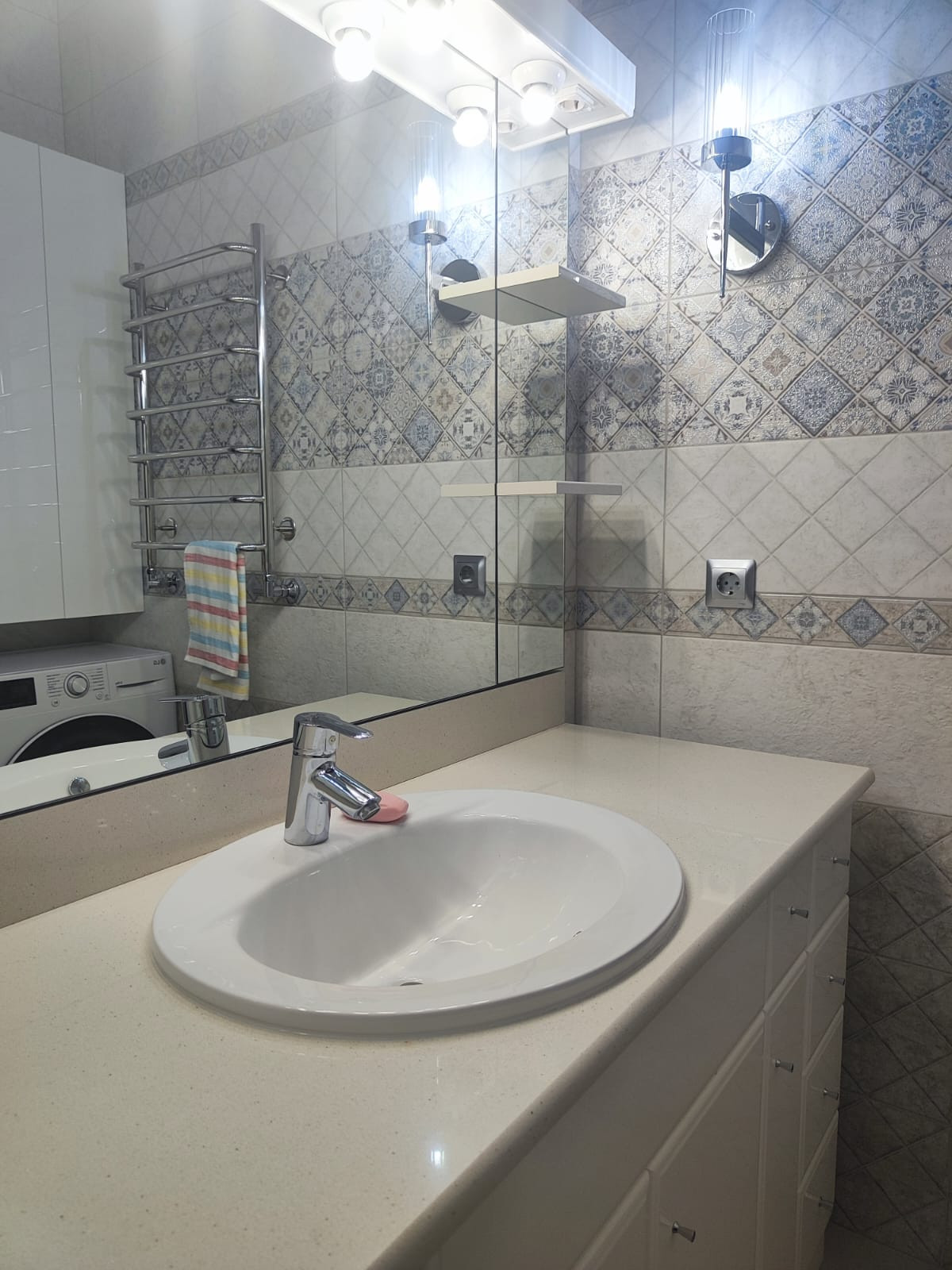 Дизайнерский ремонт выполнен с использованием качественных материалов, создавая уютную атмосферу и современный стиль интерьера. Квартира оборудована двумя санузлами, что является большим плюсом для большой семьи или гостей.