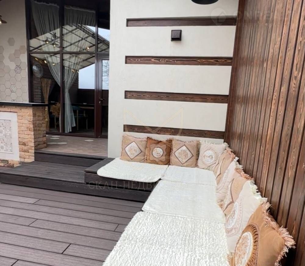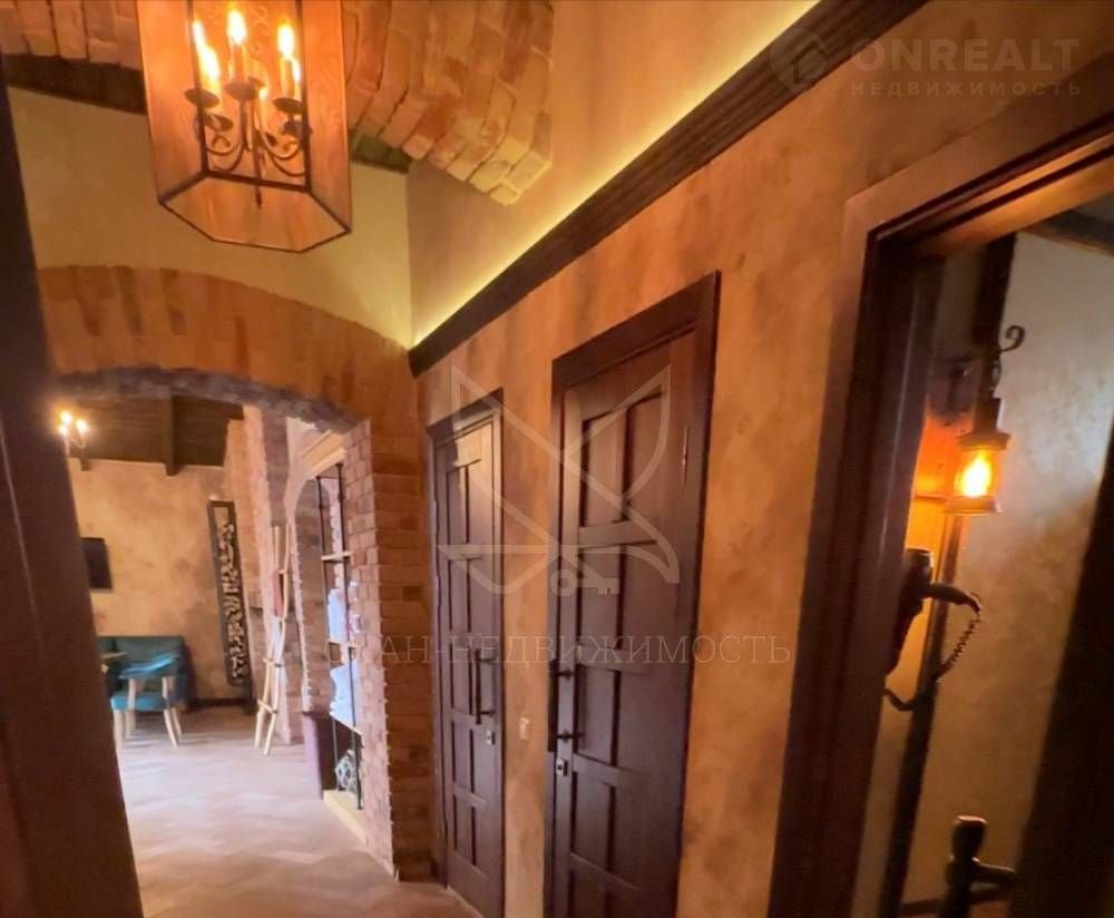 Отдельное внимание хочу уделить творческому подходу собственника, который очень тонко чувствует красоту. Декоративные акценты из дерева (Тополь, карагач, сосна, шпалерный бук, кокос, липа, можжевельник, дуб, саур - африканское дождевое дерево) ручной работы; декоративная дорожка из камня оникс на 1м этаже; на втором этаже настенный декор вырезанный вручную: орнамент на стенах, окнах, галтелях, светильниках объединяет общую картину. Мраморный (идеально зашкуренный мастером вручную) стол, настенная живопись выполненная вручную художником.