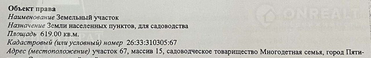 Участок под ИЖС, 6.2 сот. на продажу в Пятигорске, СТ Многодетная Семья, 67