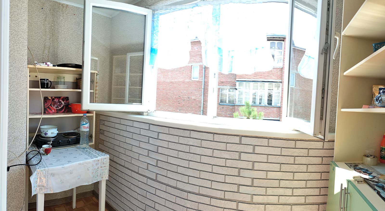 Лоджия застеклена- пвх, на лоджию вынесена кухня,