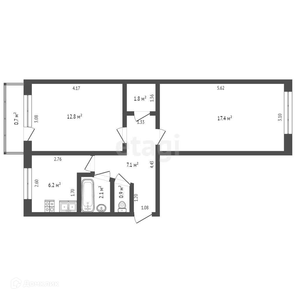Общая площадь 47.6 м2