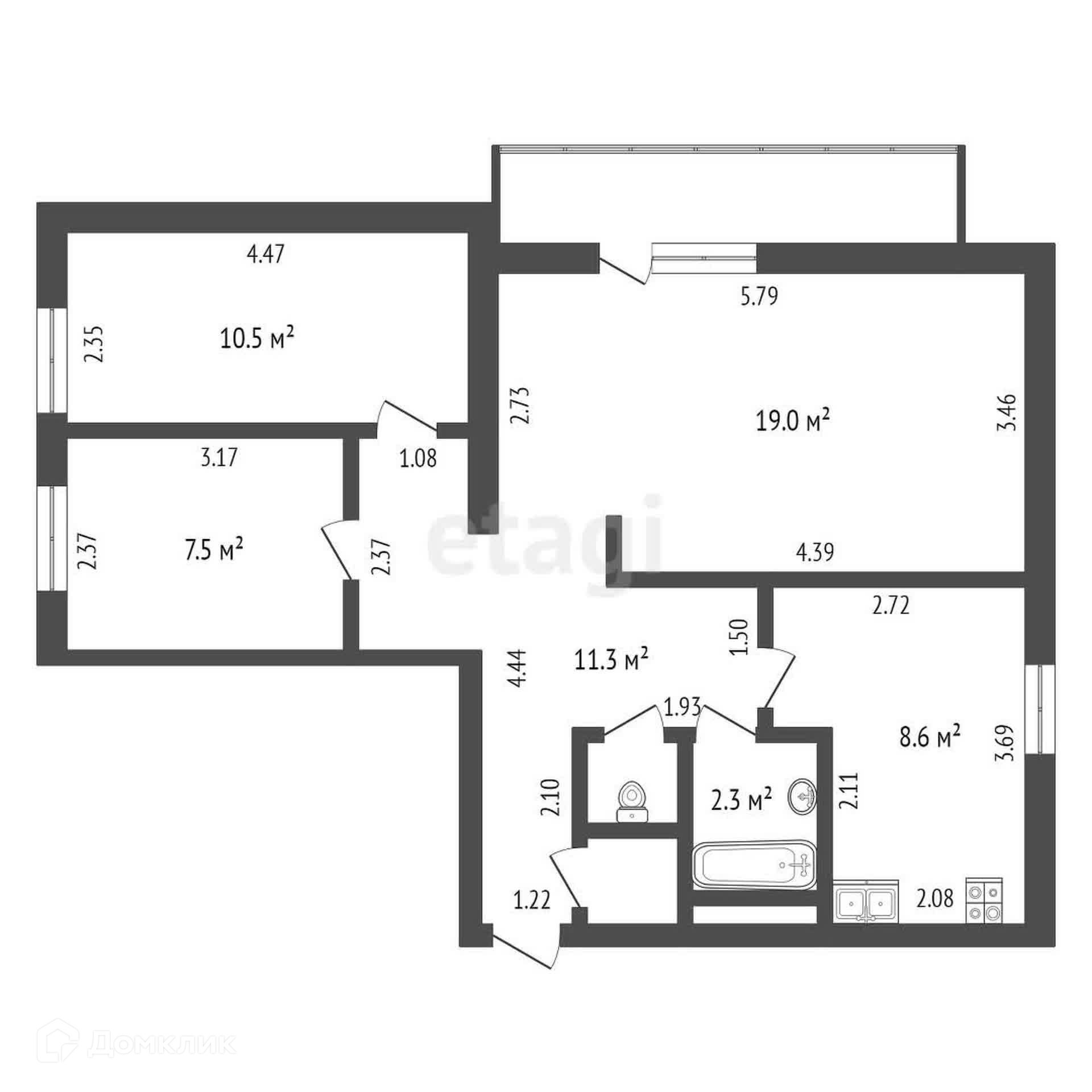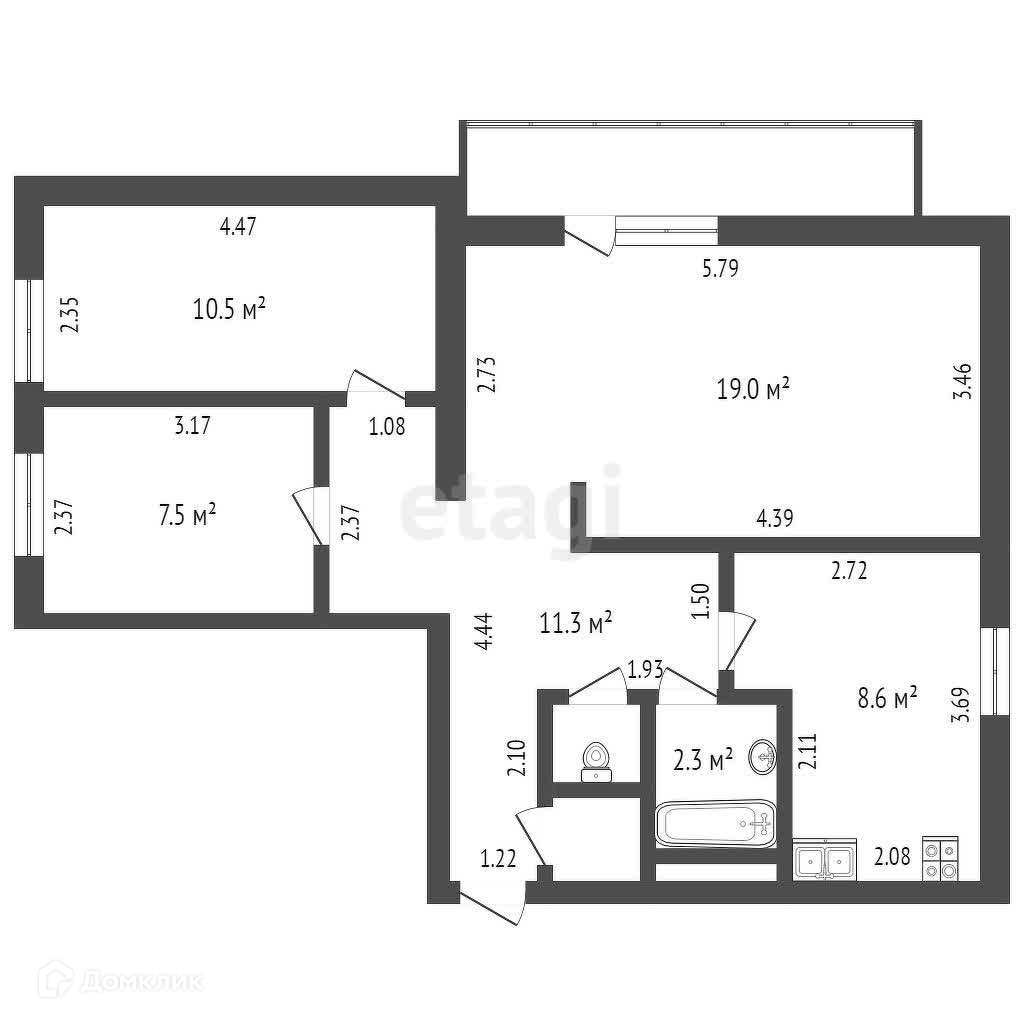Общая площадь 60.5 м2