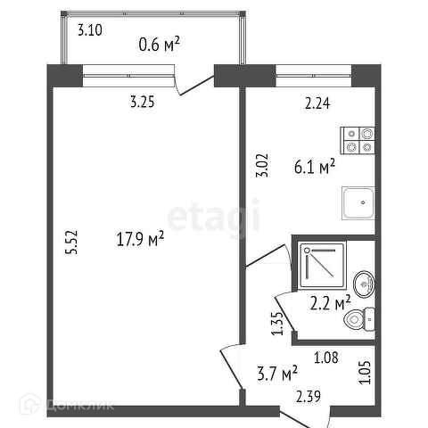 Общая площадь 30.5 м2
