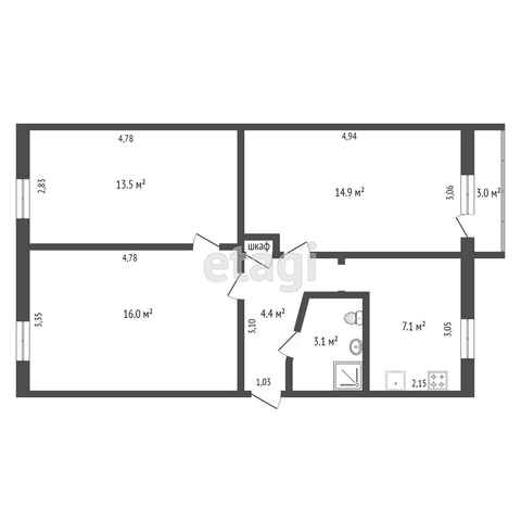 Общая площадь 59.2 м2