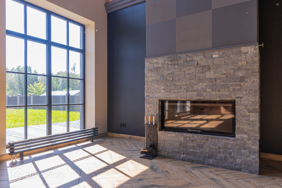 На первом этаже расположены: большая гостиная с вторым светом имеет шесть панорамных окон с декоративной раскладкой, дровяной камин в центральной части, отделанный черным сланцем. Гостиная совмещена с уютной кухней из которой есть выход в отапливаемый гараж, Вам будет удобно заносить продукты сразу в места хранения. Так же на первом этаже находится мастер-спальня со своей гардеробной и с/у. Под лестницей организовано дополнительное пространство для хранения вещей. Есть второй с/у первого этажа. И техническое помещение котельной.