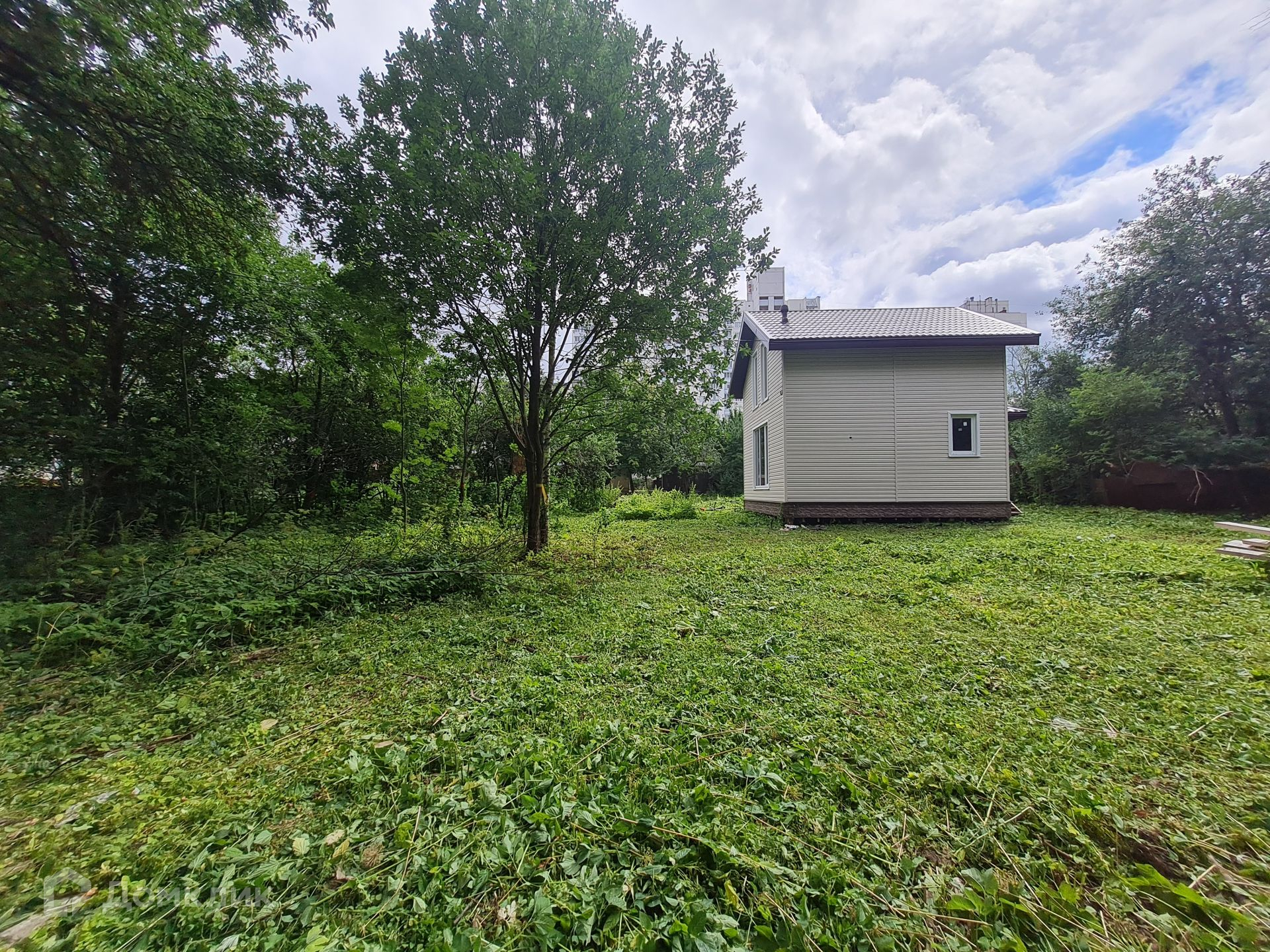 Новый стильный дом с панорамным остеклением в утопающей зелени участка.