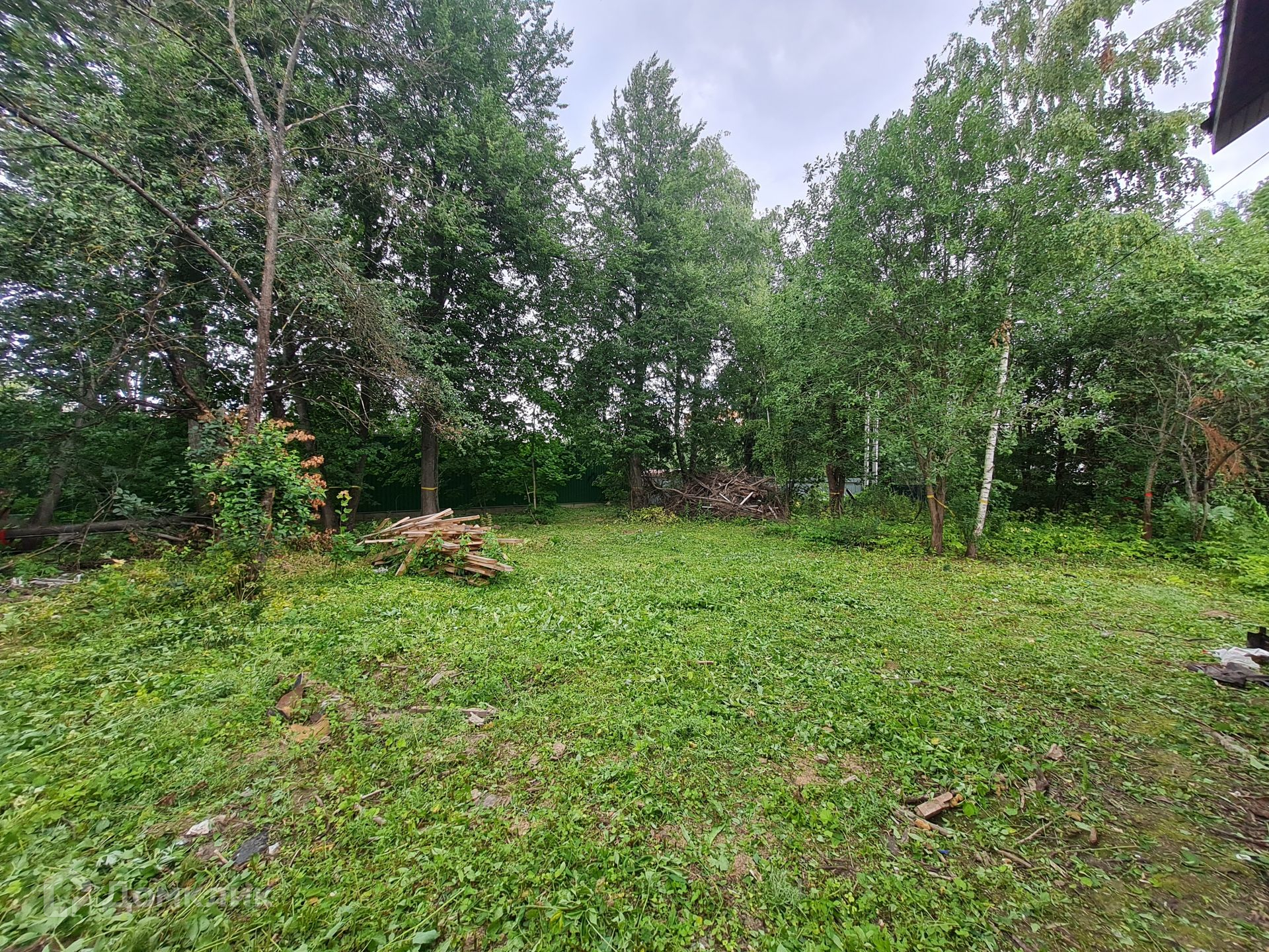 УЧАСТОК: Зеленый участок 5 соток, ровный и сухой, огорожен забором. На участке старые плодовые деревья и кустарники.