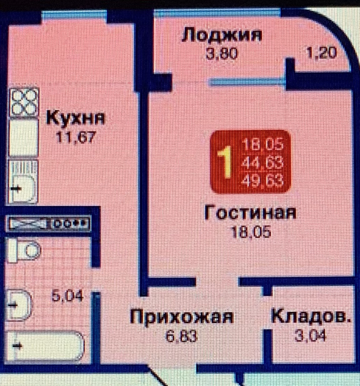 Балкон, лоджия 1 балкон