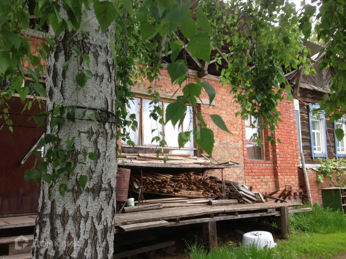 Дом деревянный, с дополнительной кирпичной постройкой, которую можно использовать для абсолютно разных целей - жилье, мастерскую, склад.