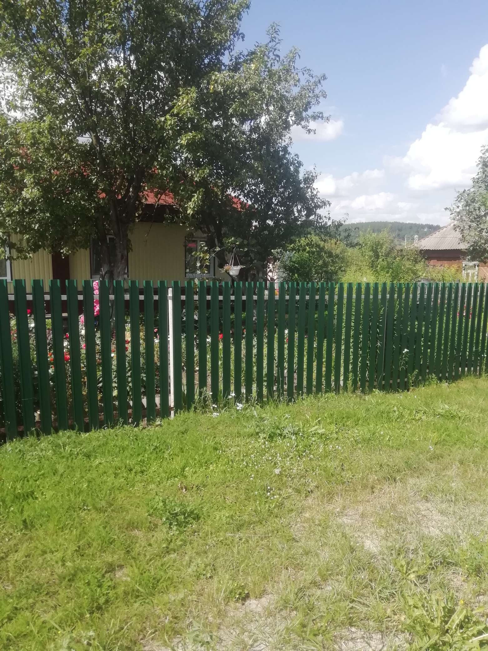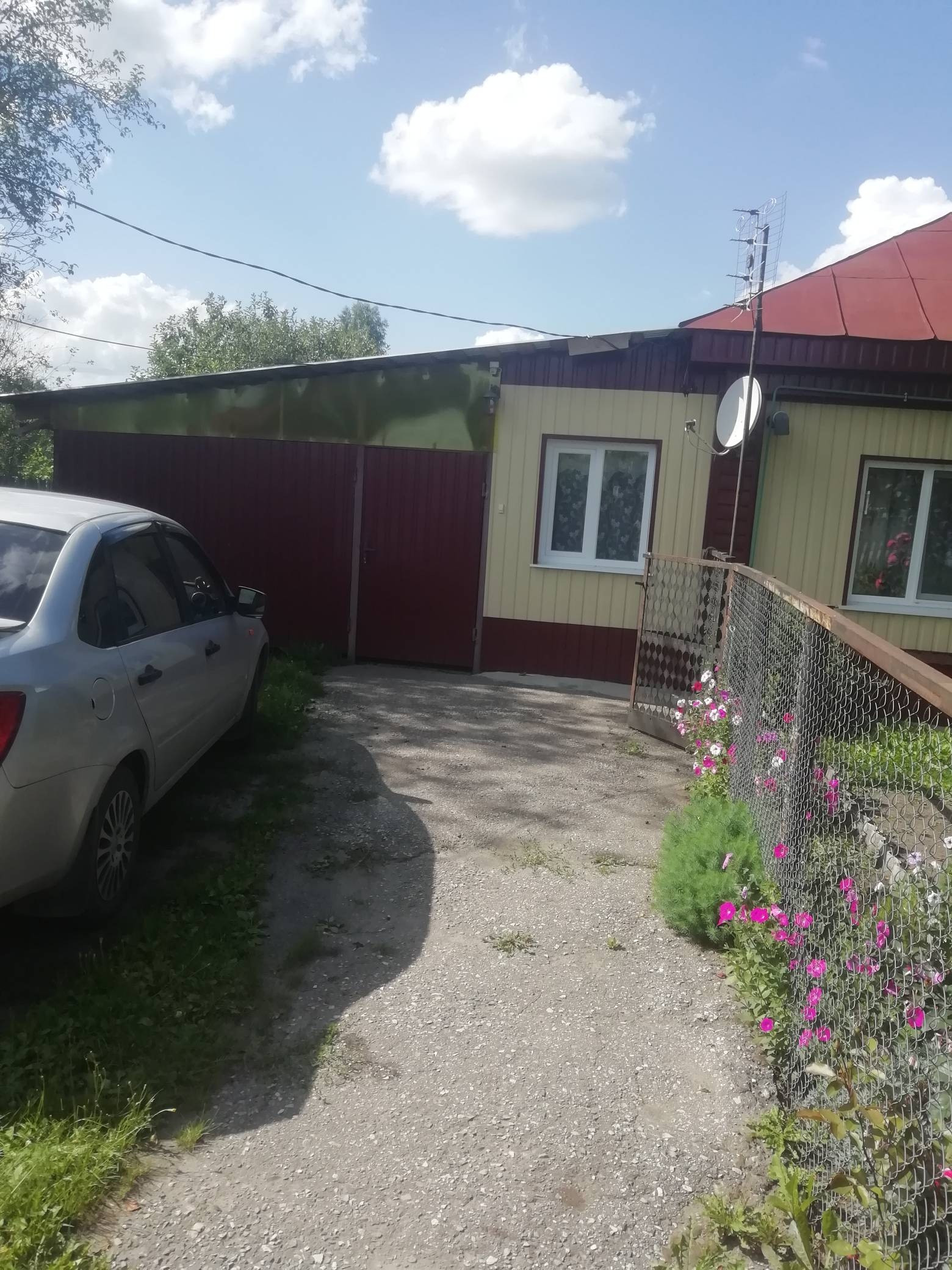 Дом деревянный, обшитый железом, крыша железная, газовое отопление, вода, канализация, окна пластиковые
