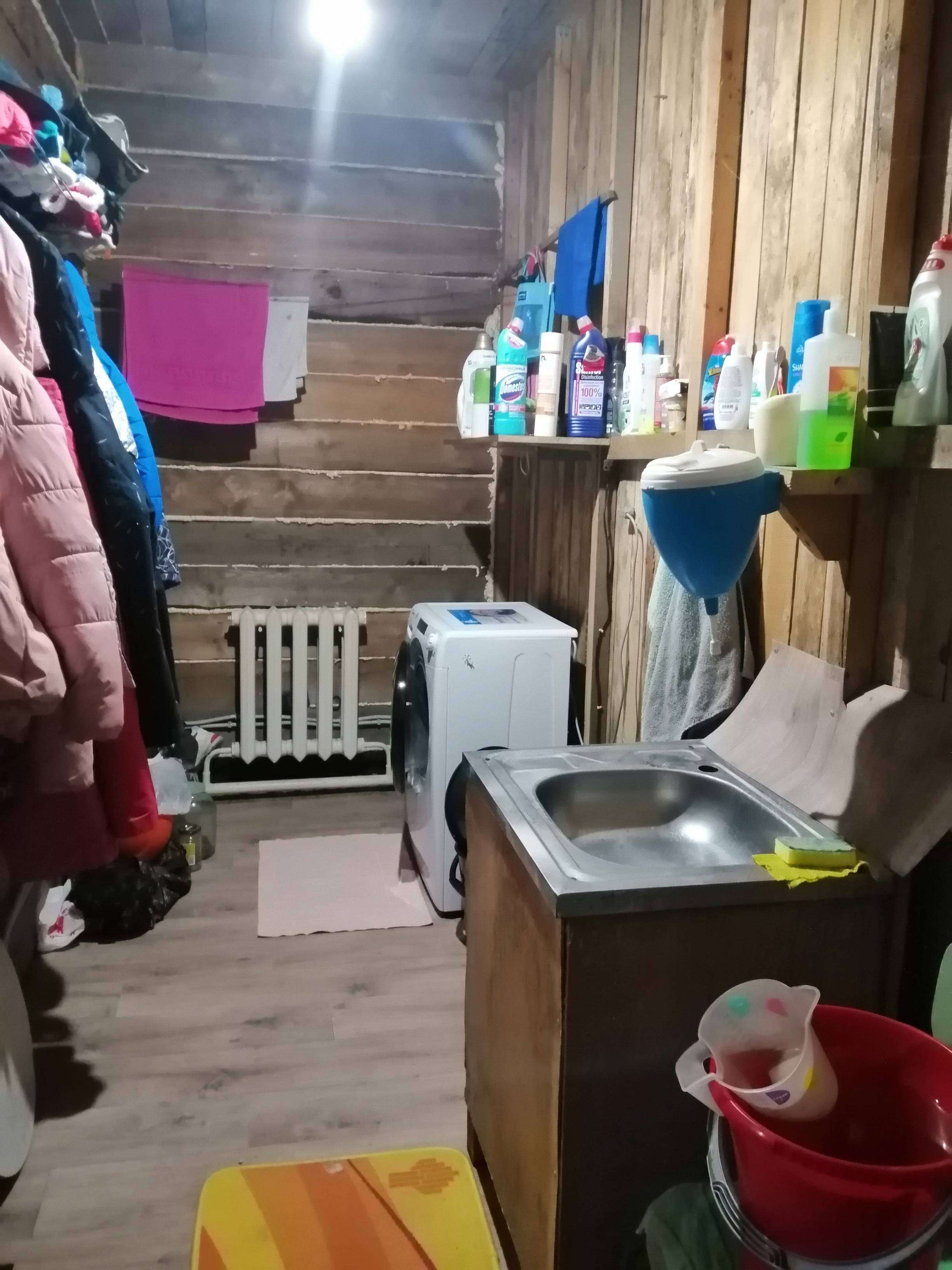 В дом заведена вода от колодца. Подключена стиральная машина - автомат. Слива нет.