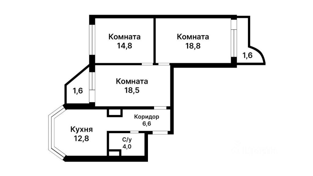 Общая площадь 75.6 м2