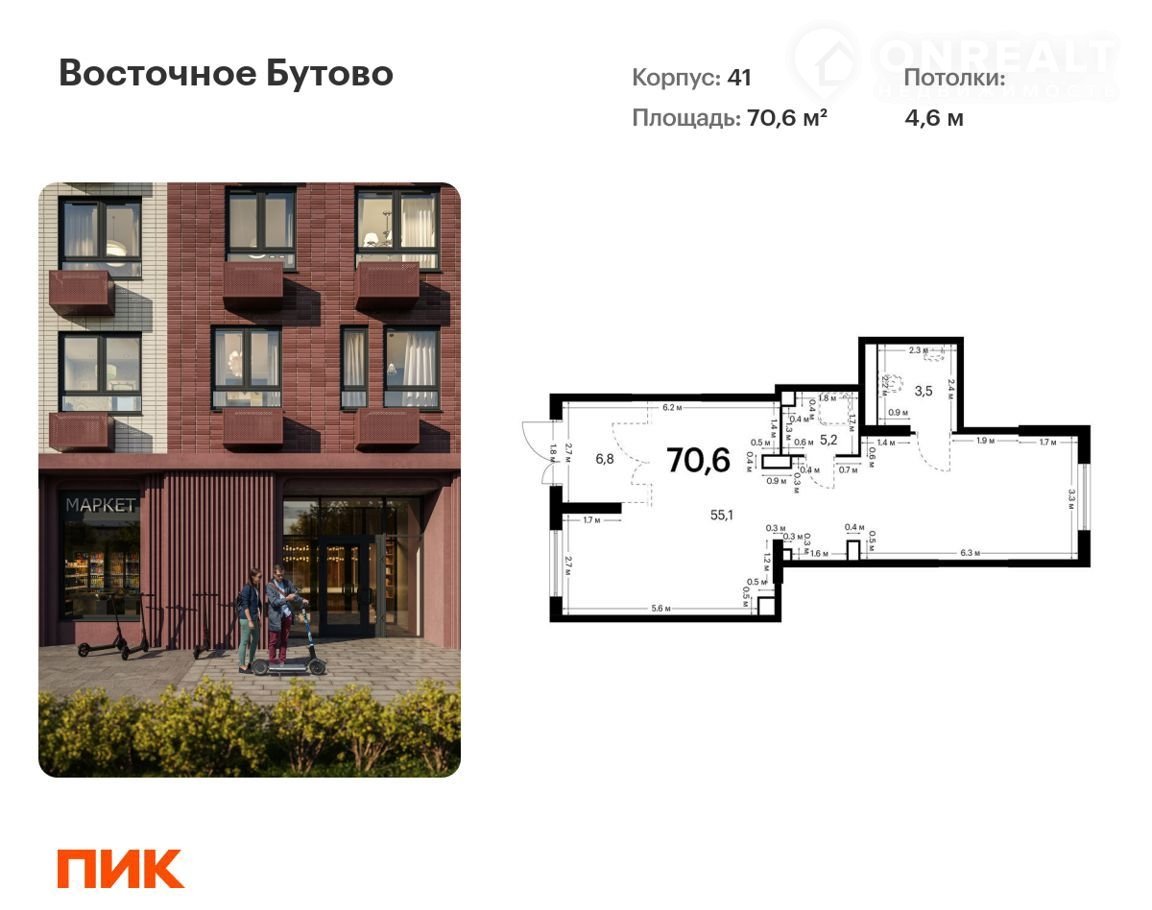 Общая площадь 70.6 м2