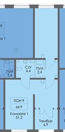 Общая площадь 65 м2