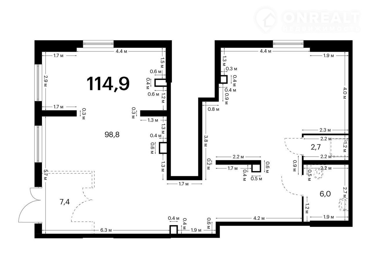 Общая площадь 114.9 м2