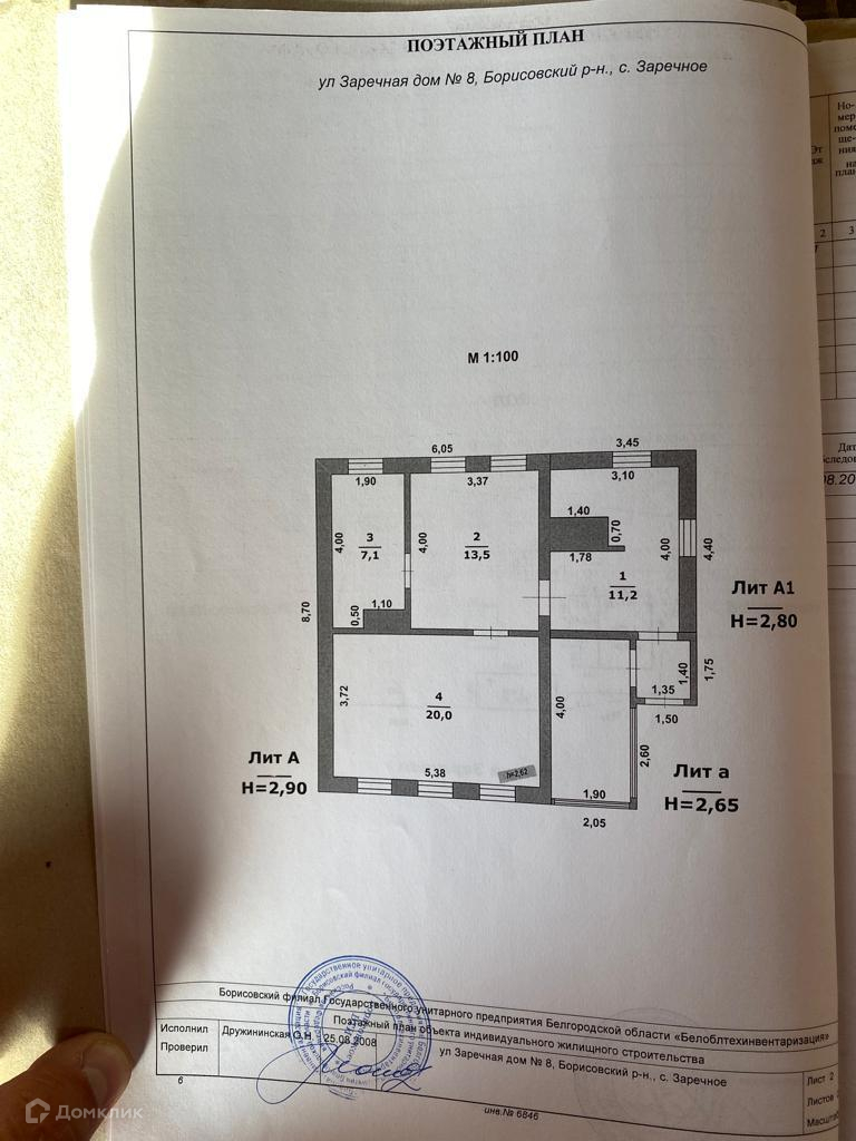 1-этажный дом, 52 м2, на продажу в рабочем посёлке Борисовка, площадь Ушакова