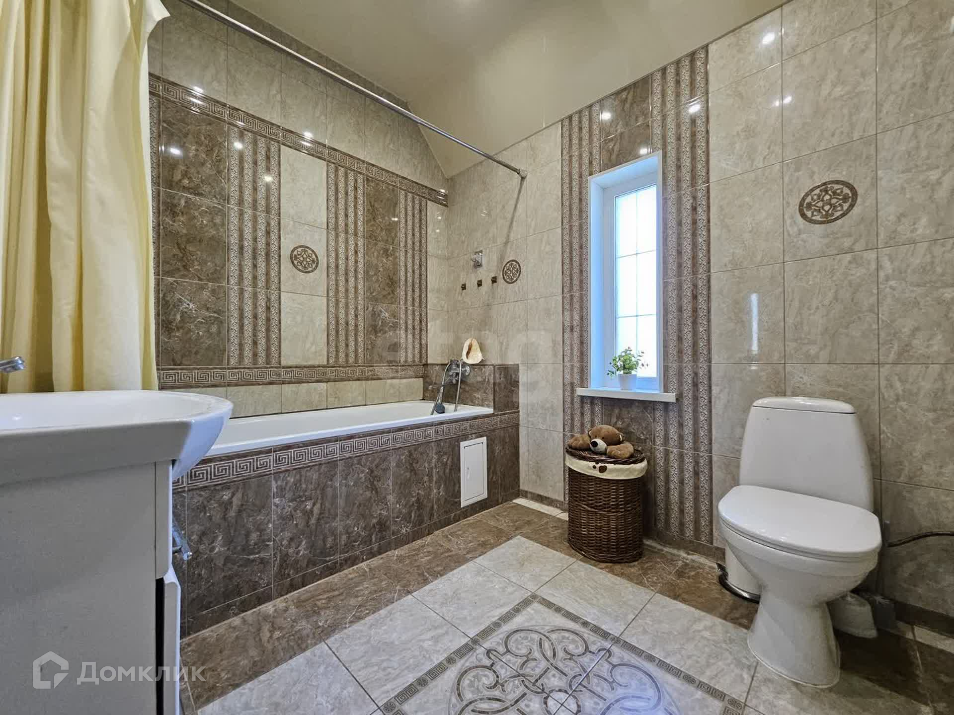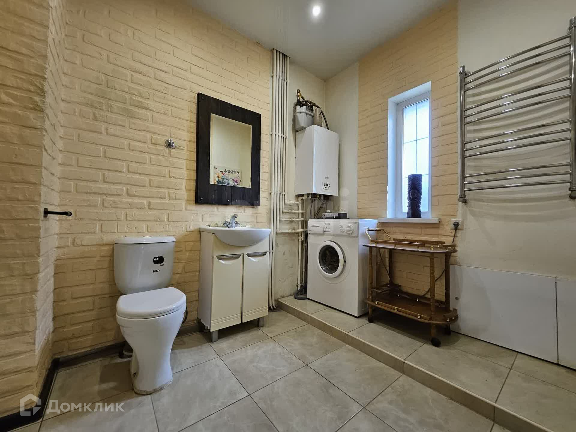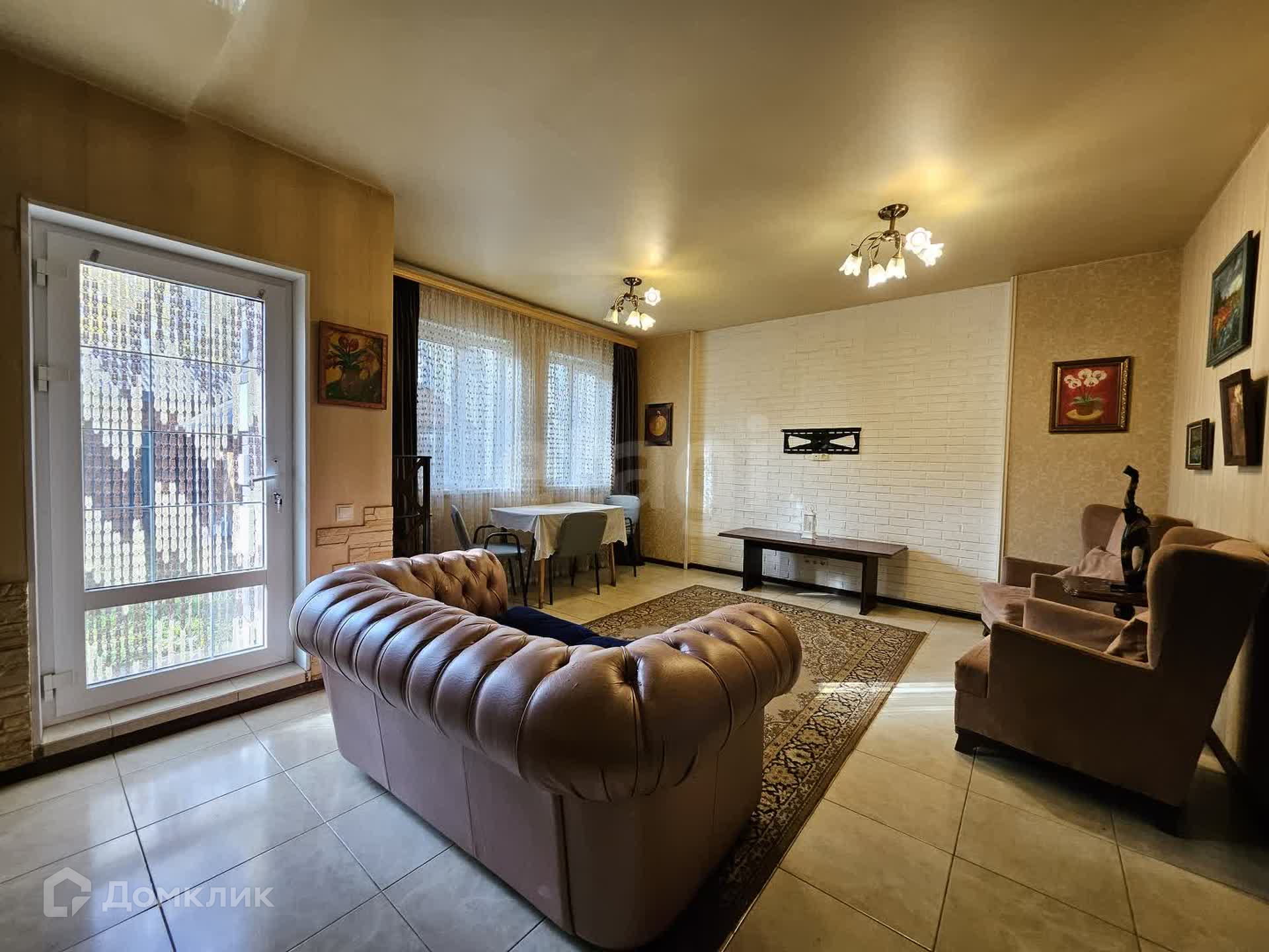 Дом построен из газобетонных блоков, облицован клинкерной плиткой под кирпич.