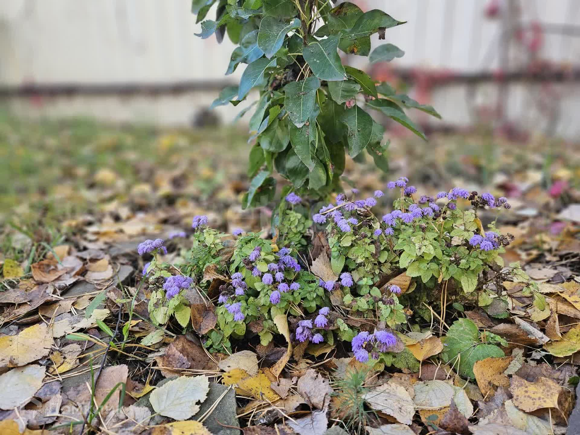 На участке плодово-ягодные и декоративные деревья и цветы.