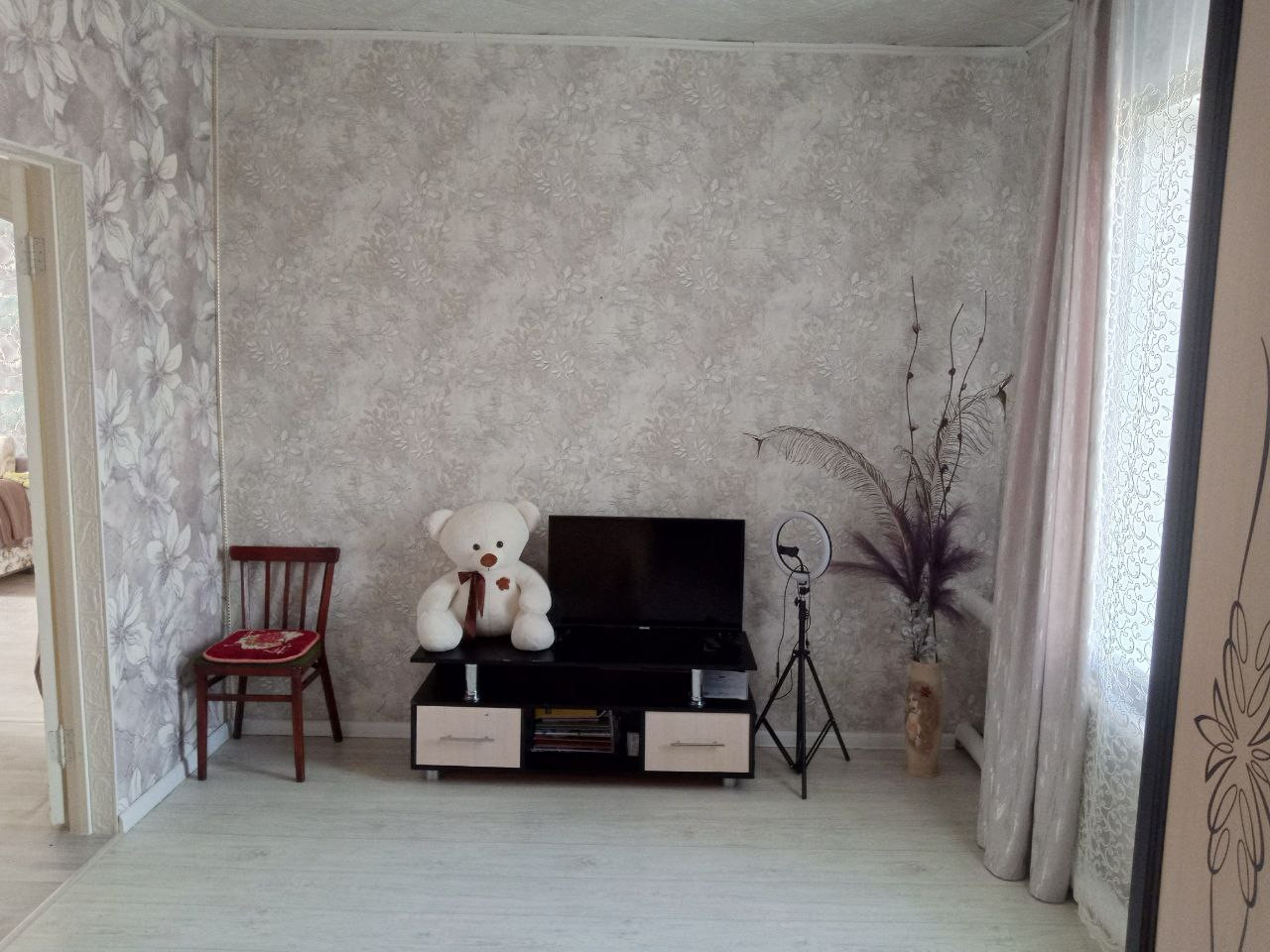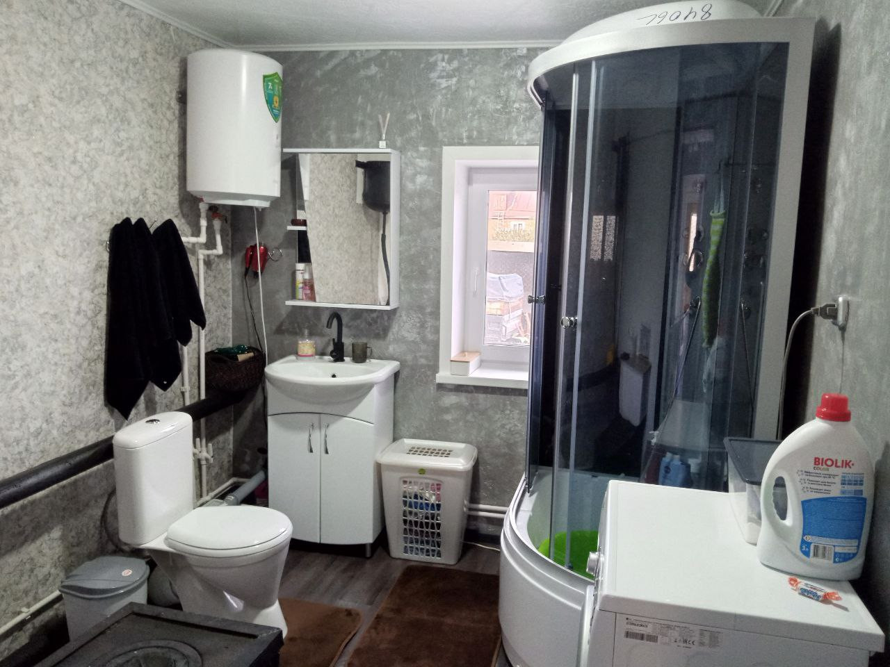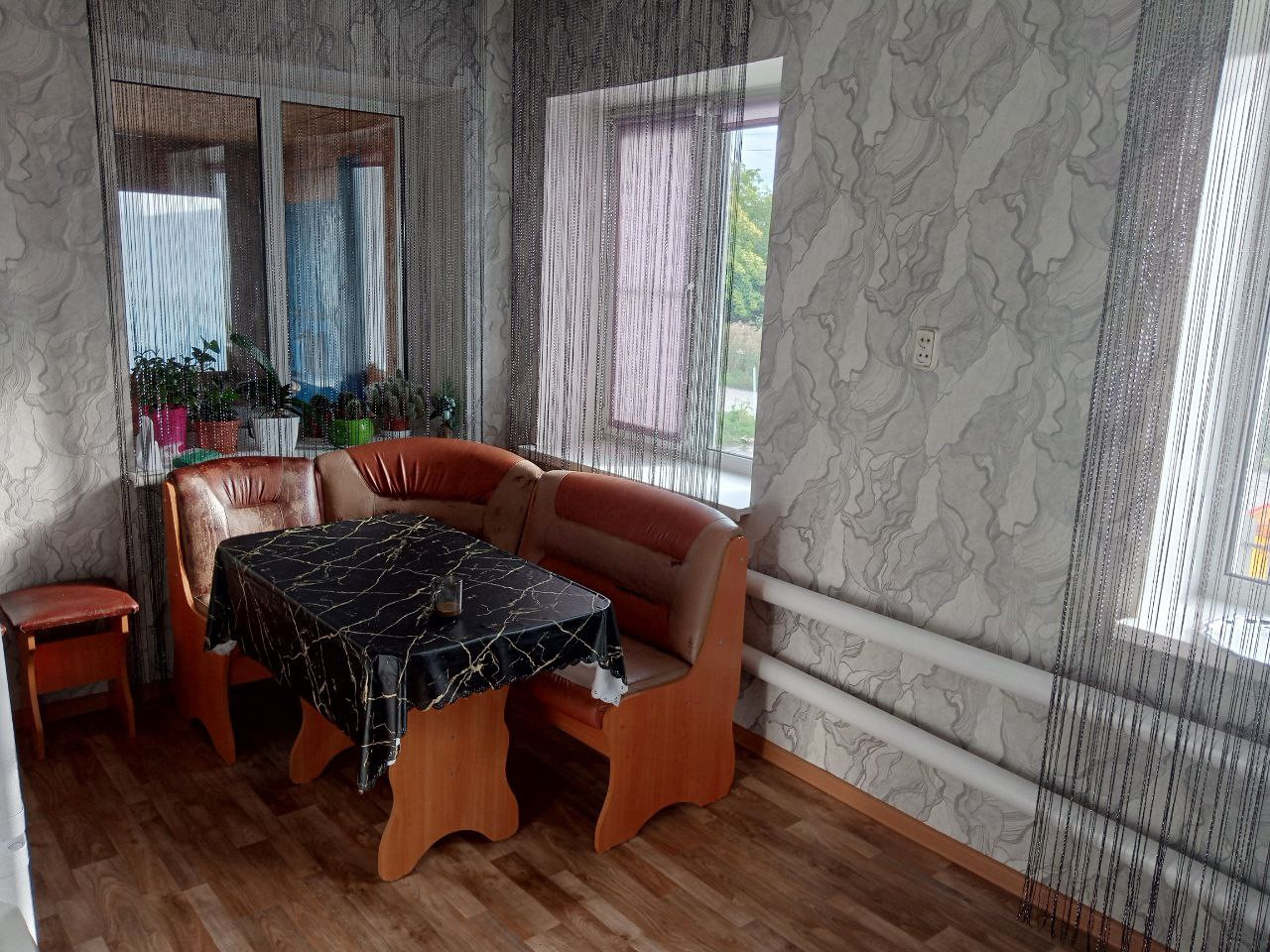 Тёплый благоустроенный дом: печное отопление, окна и входные двери ПВХ, Туалет, душевая. 2 спальни, гостиная, кухня, 2 прихожие, коридор, кофеварка совместимая с душевой.