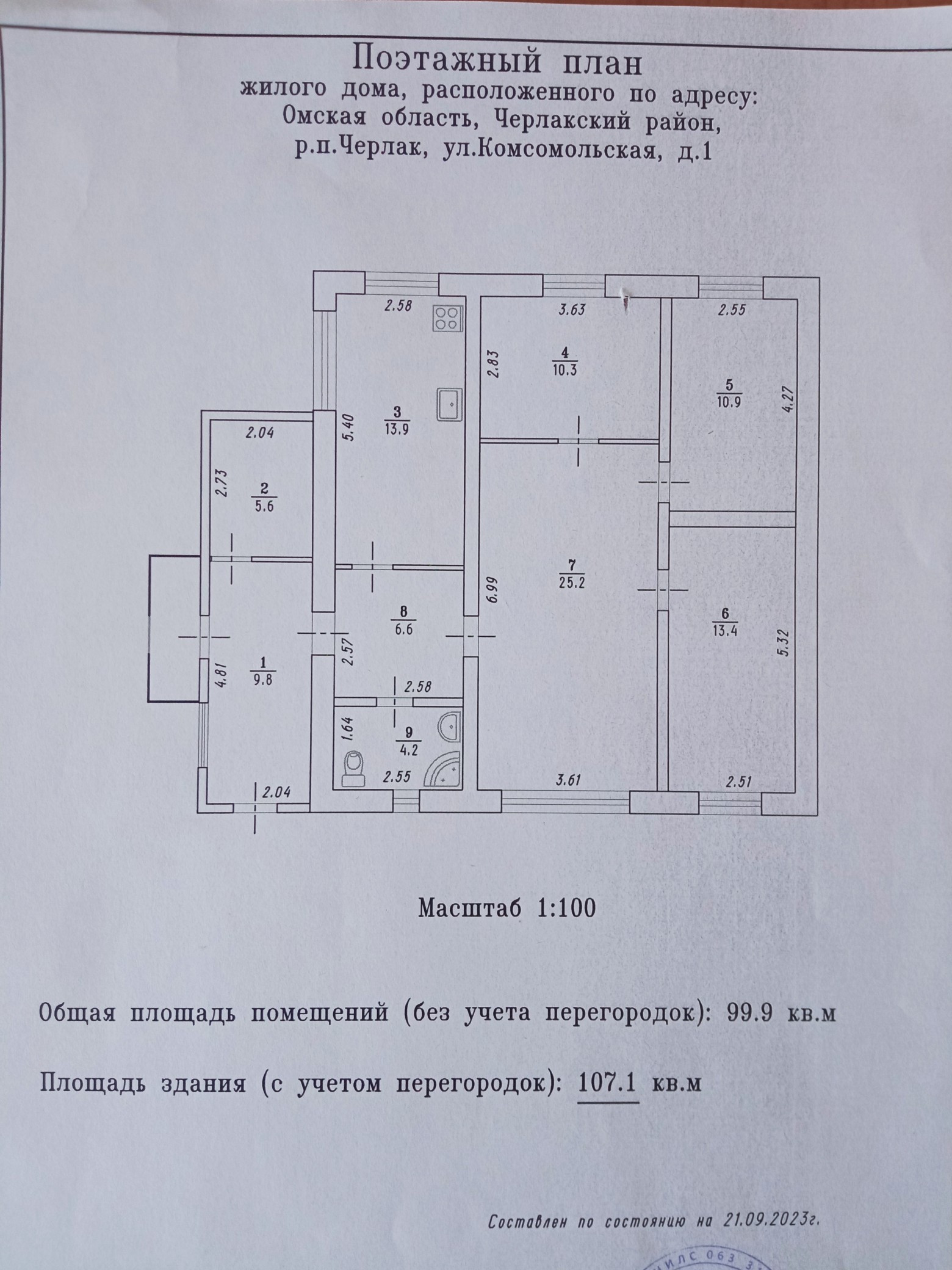 1-этажный дом, 107 м2, на продажу в рабочем посёлке Черлак, Комсомольская улица, 1