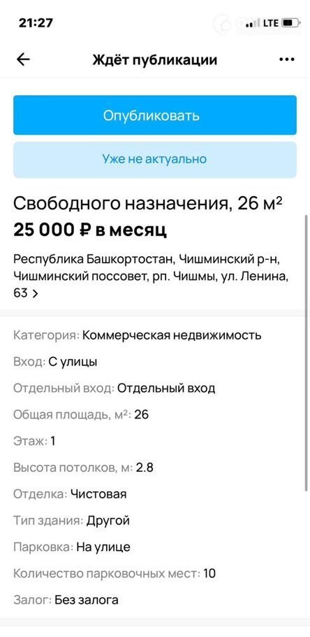 Помещение свободного назначения, 25 м2, в аренду в рабочем посёлке Чишмы, улица Ленина, 63