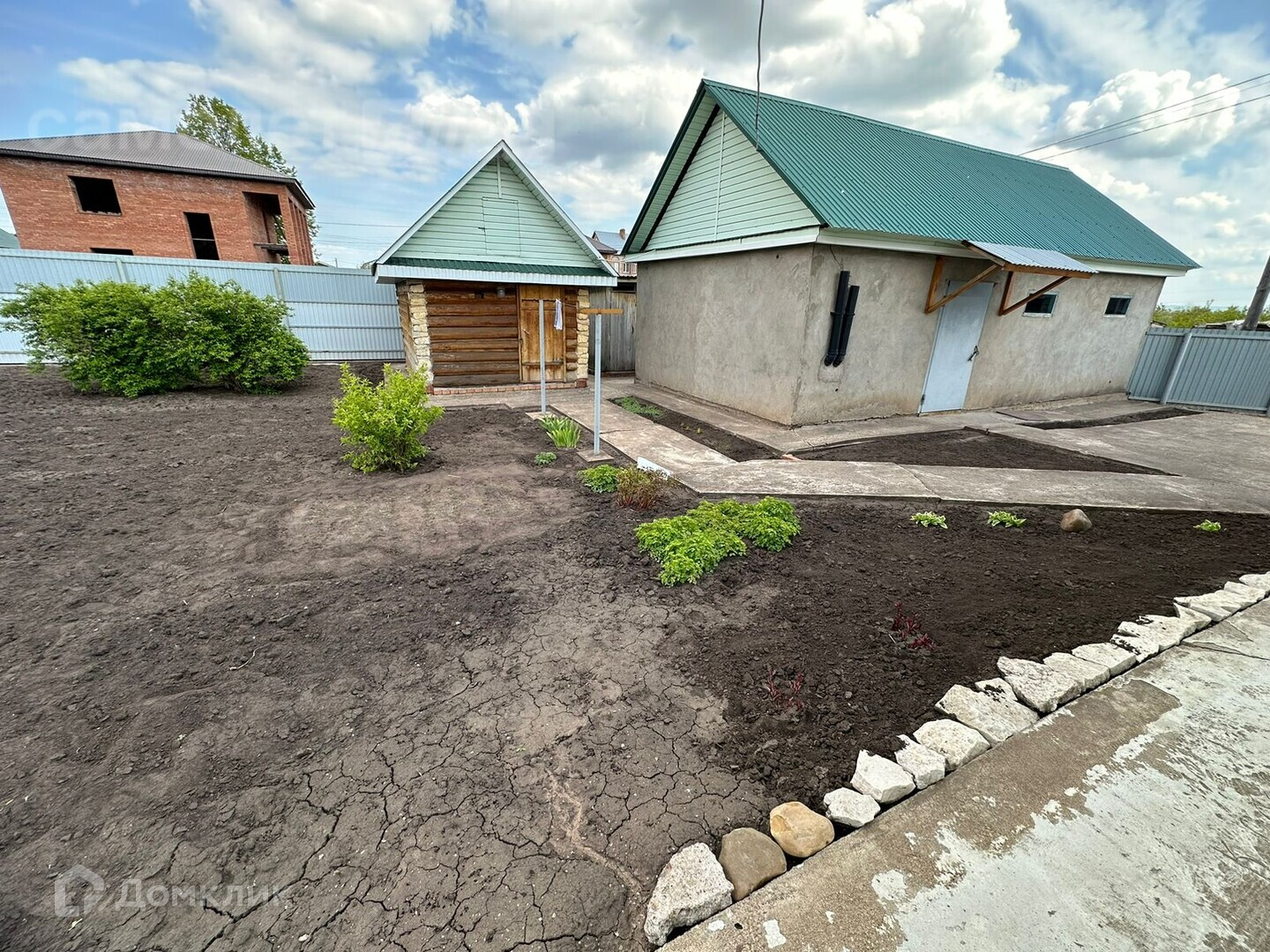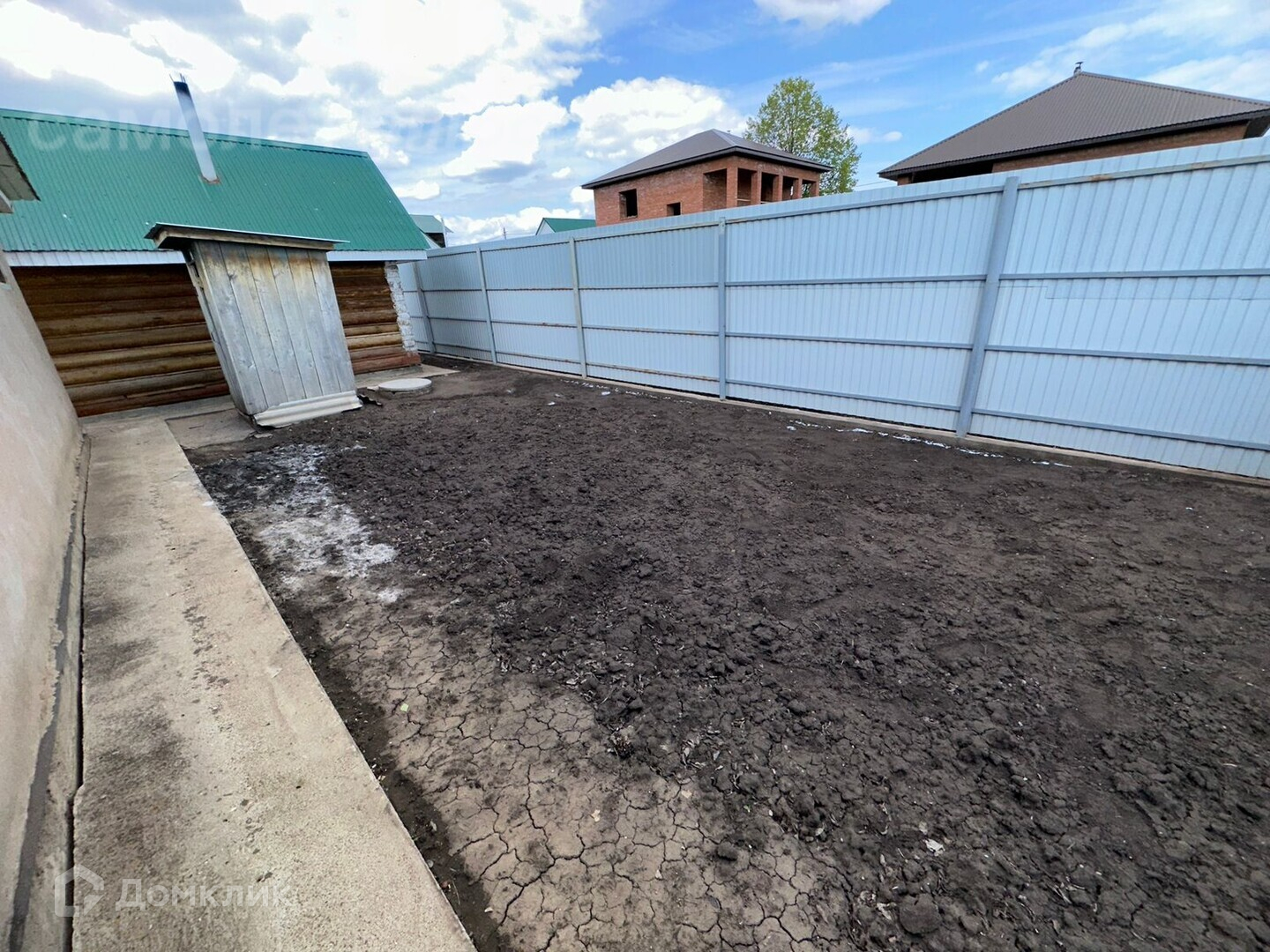 Участок 8 соток, подъезд к дому очень удобный, бетонированный дворик-парковка.