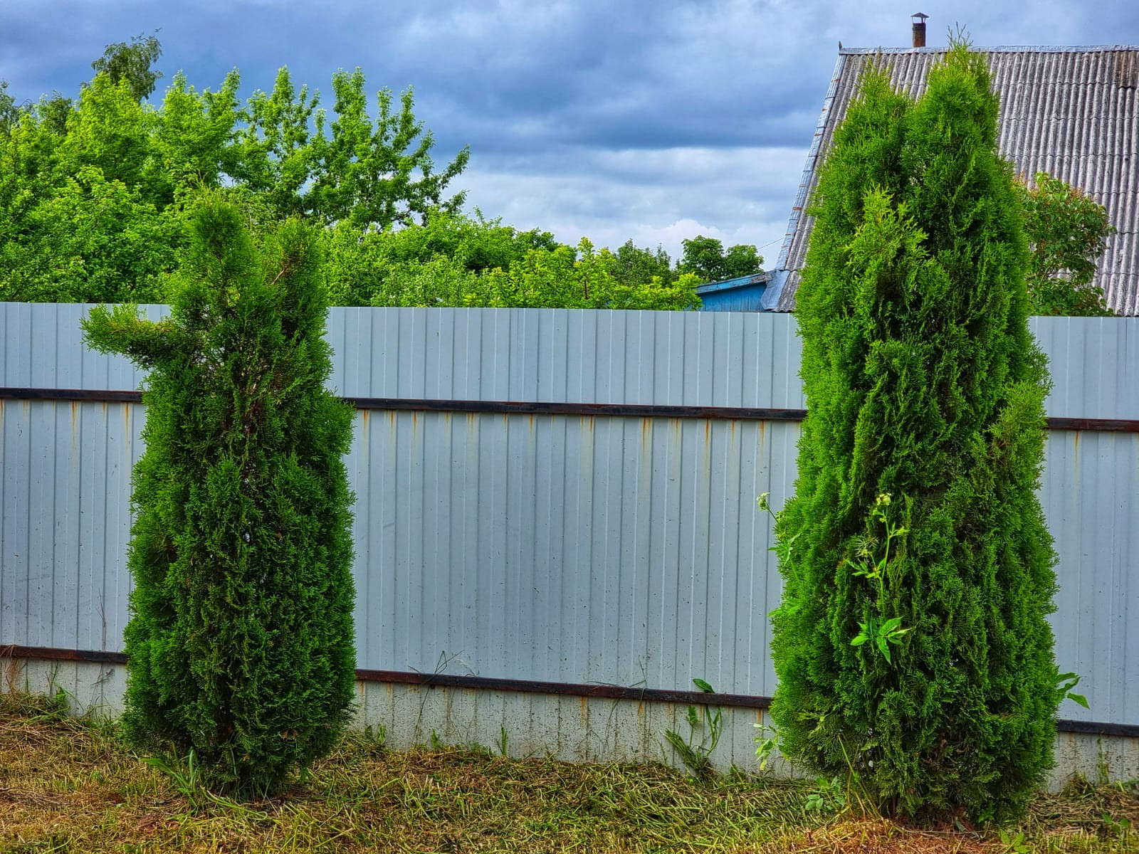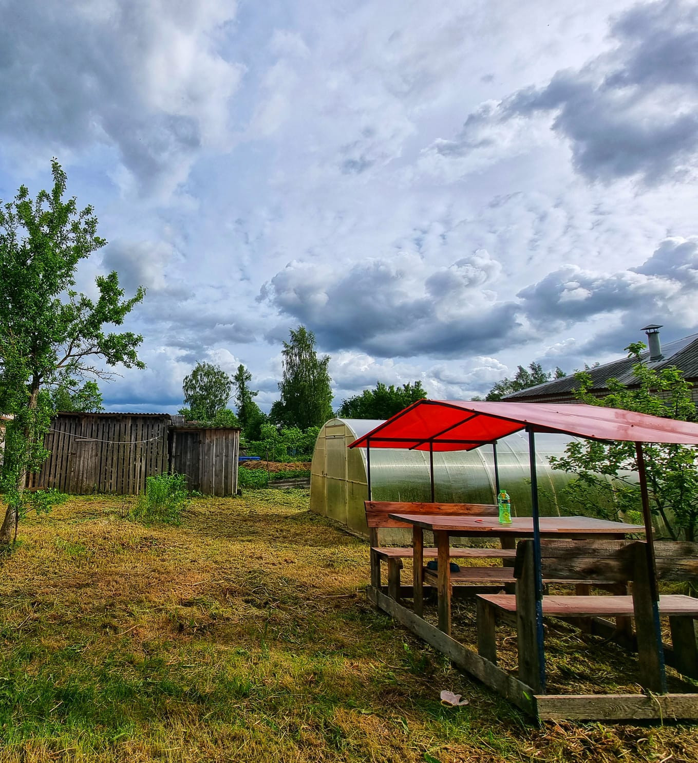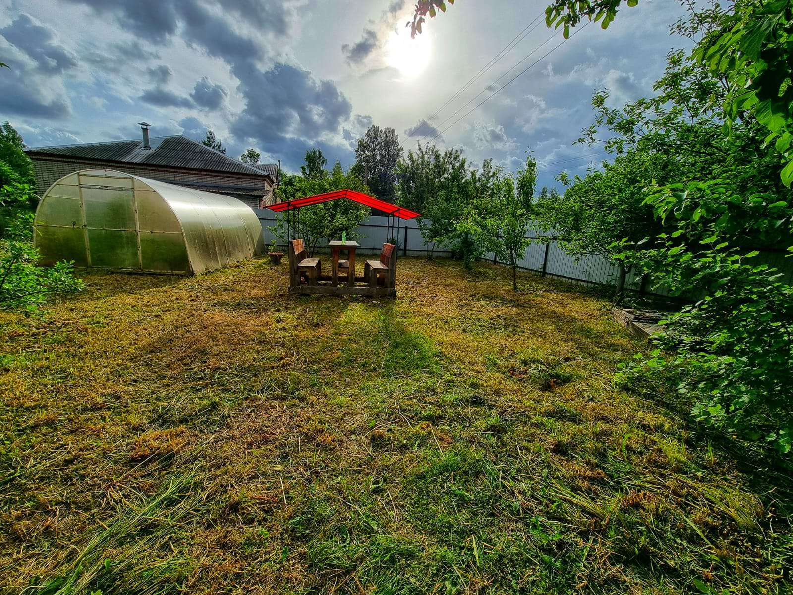 Участок огорожен забором, на участке имеется гараж, баня, сараи, парник, колодец, плодовые деревья, цветы и т д