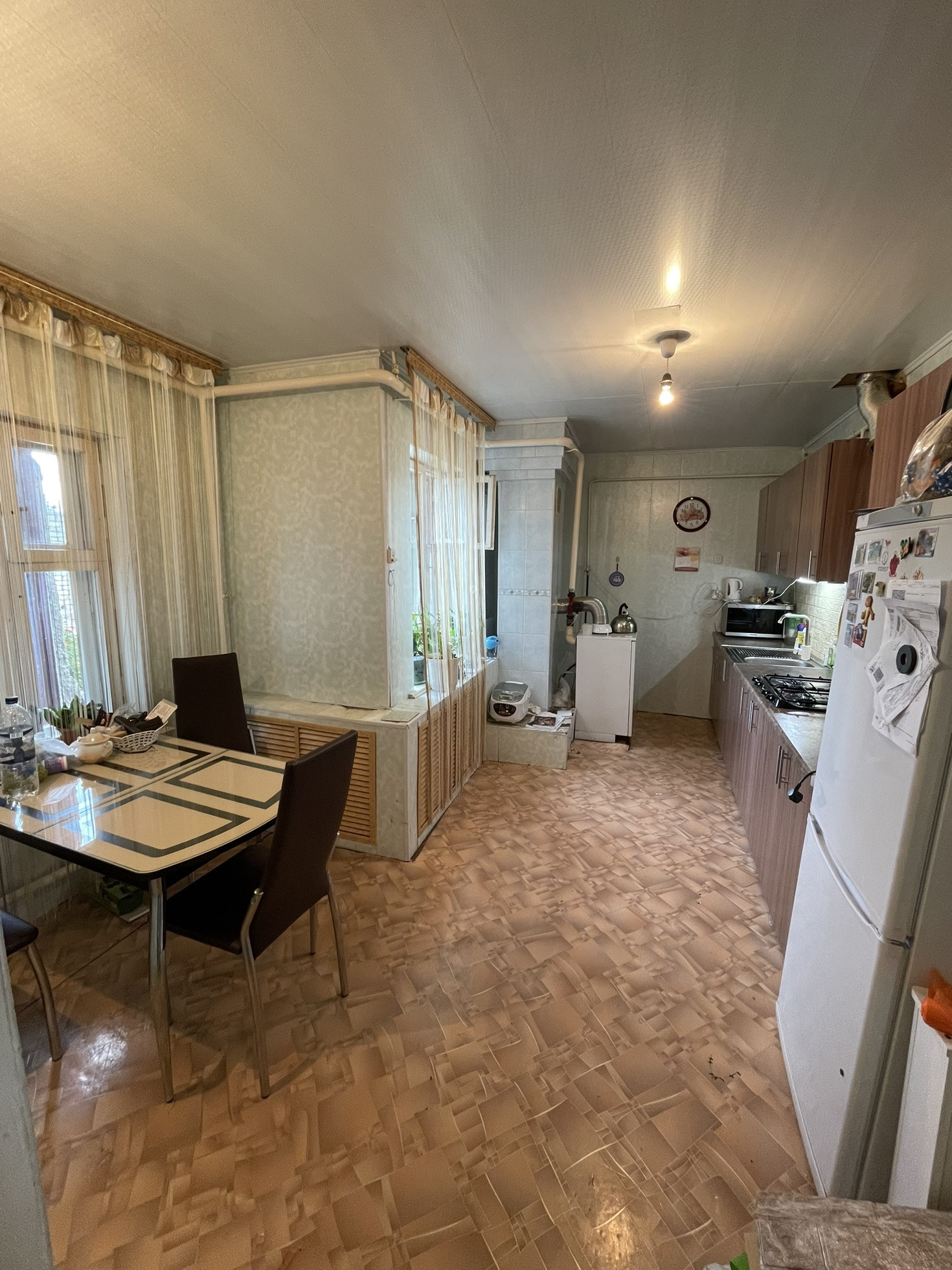 Комфортный дом для семьи с мебелью и техникой (кондиционер, холодильник, камера наружного наблюдения, плита и кухня установлены в 2023 году, мелкая бытовая техника). Заезжай и живи! Также в стоимость входит готовый бизнес (продуктовый магазин встроен в дом). Если бизнес не нужен, возможно закрытие и перевод площади здания в жилую. Также здание магазина можно использовать под иной бизнес. Дом расположен в 3 минутах от цента поселка, на одной из центральных улиц. Асфальтированная дорога. Школа в 2 минутах, детский сад в 15 минутах ходьбы. На участке погреб, баня сруб 6*4, терраса, недостроенный кирпичный сарай, парник. Большой гараж на 2 газели. На втором этаже дома летняя комната. Часть дома ( зал и две жилые комнаты) щитовая установлена в 70 годах, остальной дом пристроен в 2011 кирпичный. Во всем доме высокие потолки, большие окна (старые окна заменены на пластиковые). В ванной душевая, бойлер, стиральная машина, раковина со смесителем, куплен унитаз (необходимо подключить к канализации).
