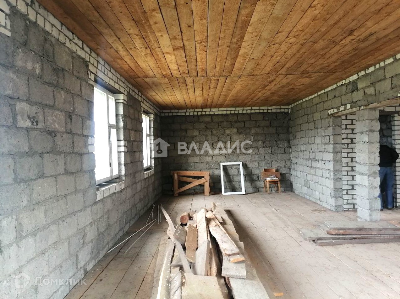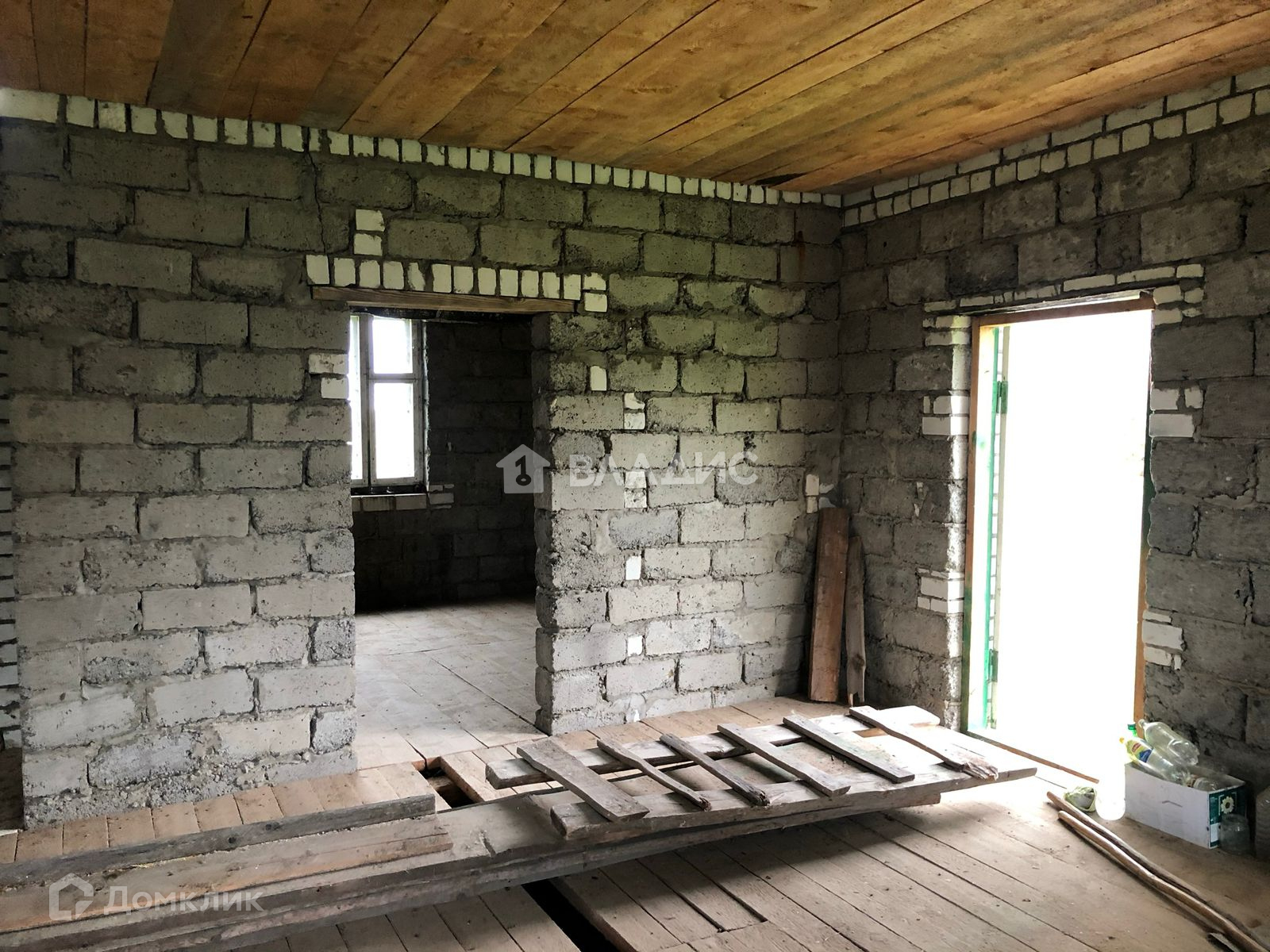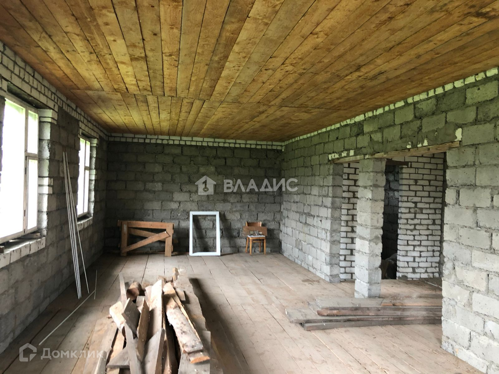 Стены дома из шлакоблока и облицованы фасадным кирпичом.