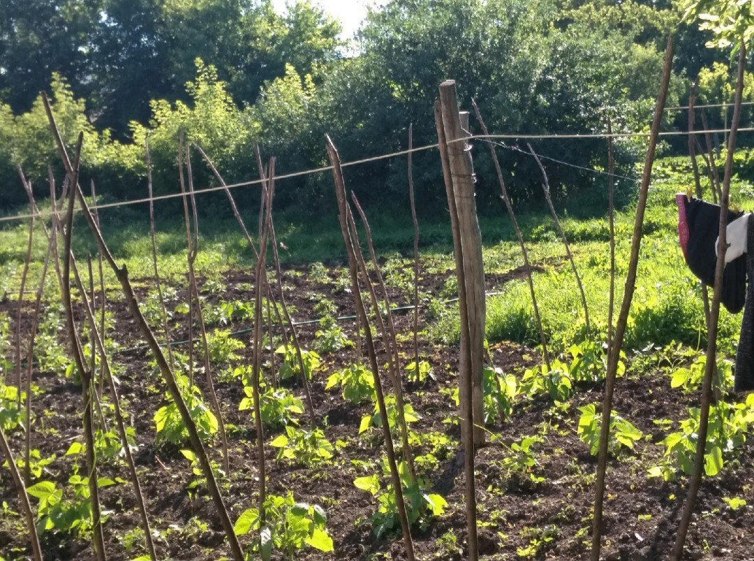 В саду есть яблоки, вишня, слива,черешня, виноград и грецкий орех (за год-два должен дать плоды). Мята, мелисса, розы чайные и другие разновидности цветов.