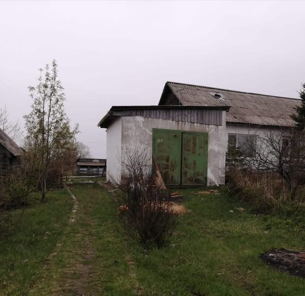 Квартира в двухквартирном доме.  На земельном участке имеются насаждения.  Баня. Большой просторный гараж 22.9 кв.м, прилегает к дому  имеет выход на просторную веранду. Окна пластик 3 из 4х. Центральное отопление, водоснабжение. Требуется ремонт. Отлично подойдет молодой семье, создать свой уют по своему. Рядом школа, д/сад, дом культуры, почтовое отделение, аптека.