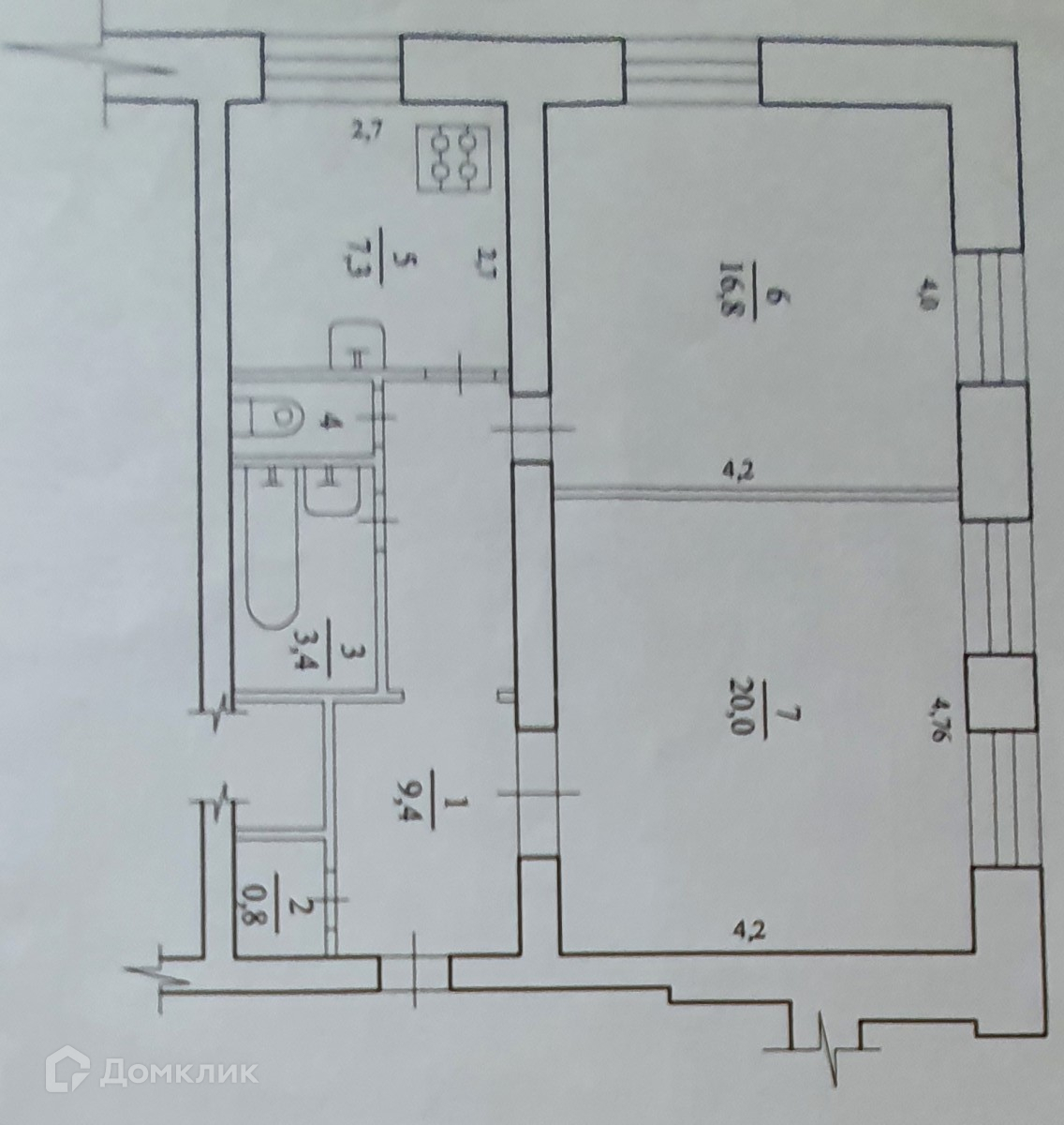Жилая площадь 36.8 м2