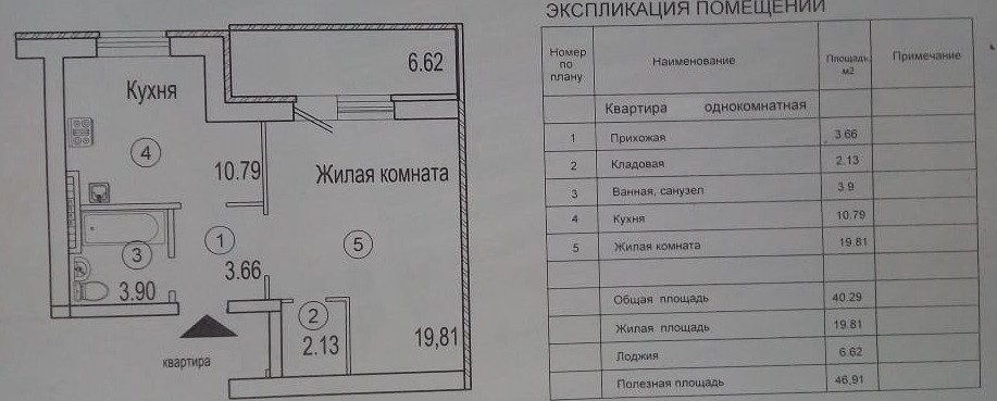 Общая площадь 40.2 м2