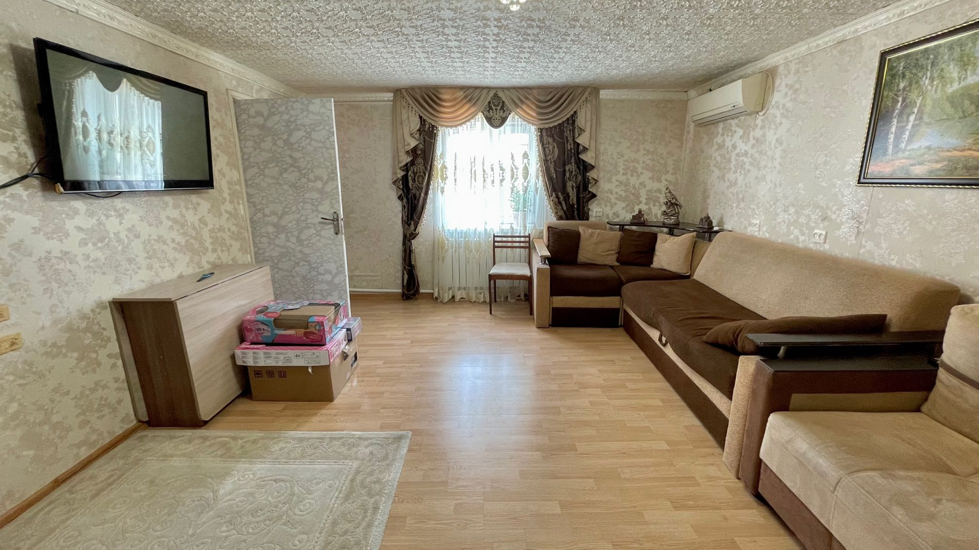С ремонтом, пластиковые окна, мебель остаётся.